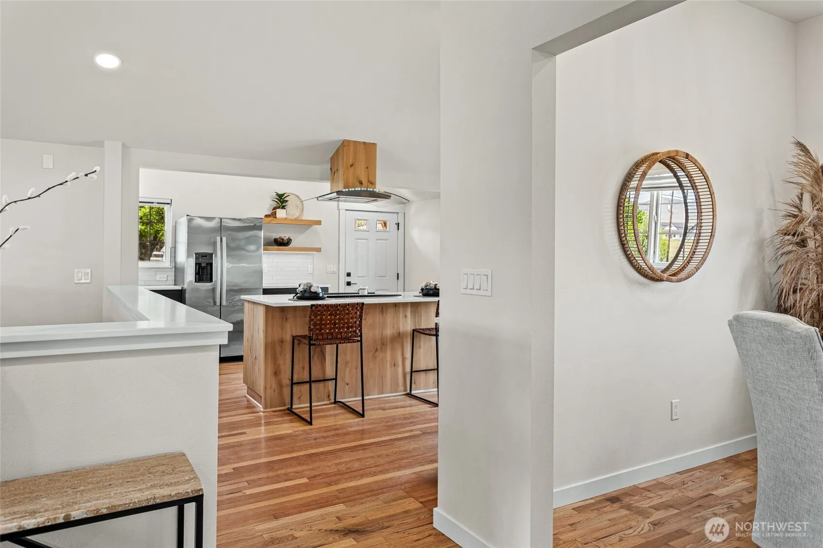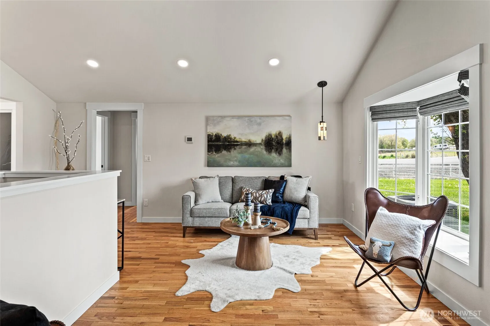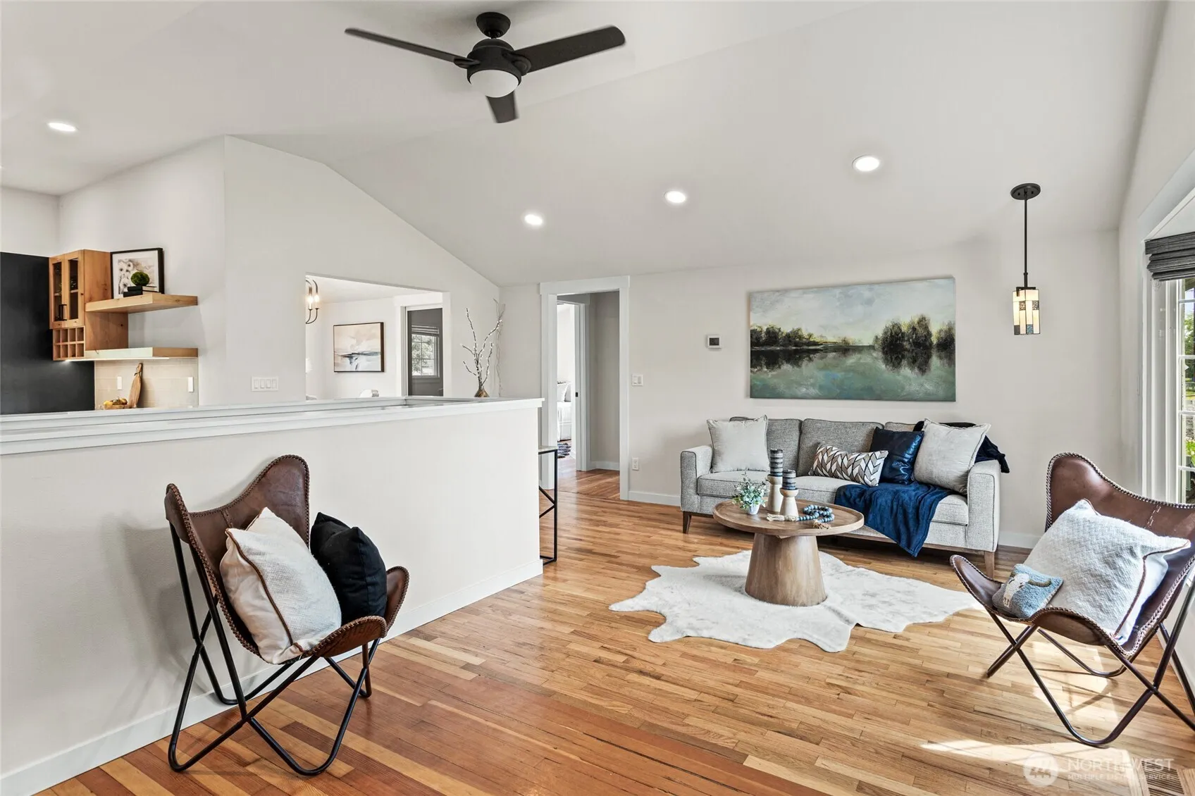 Beautifully remodeled modern farmhouse on a fully fenced 0.97-acre lot. This 2-bed, 1-bath home features hardwood floors, custom wood cabinetry, granite countertops, a tiled backsplash, and new stainless steel appliances. The finished basement includes a laundry room with utility sink and extra storage. Enjoy a spacious 42×60 finished 3-bay shop, 800 sq. ft. of unfinished barn space, a chicken coop, mature trees, and a back deck perfect for relaxing. Complete interior remodel crafted by the esteemed local talent M.B. Designs. This home blends modern updates with classic charm. Move-in ready and one of a kind!