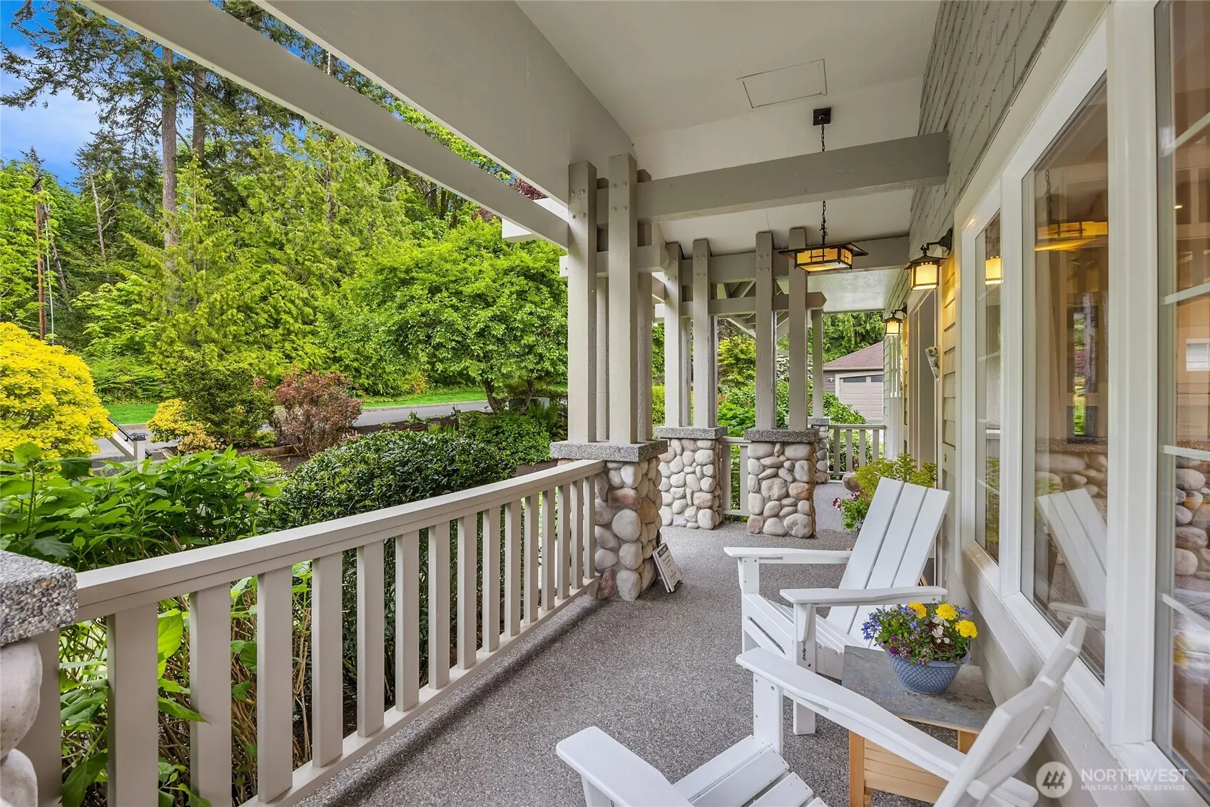 A charmingly delightful Craftsman-style home with a covered porch surrounded by brilliant flower beds & pathways leading to an established, fenced vegetable garden! Just across the street is a protected open space, adjacent walking trails & to the north is a small Tot Lot. You’ll find the Wing Point Golf & Country Club to the South and not far beyond – the Seattle Ferry, Winslow shopping, schools, restaurants, theater & entertainment. Features include fine millwork, custom built-ins, maple floors throughout, a river rock fireplace, granite counters, formal & informal dining spaces, glass French doors opening to a spacious deck and stone patio for entertaining. Newer roof & exterior paint. This home speaks “cozy and convenient!”