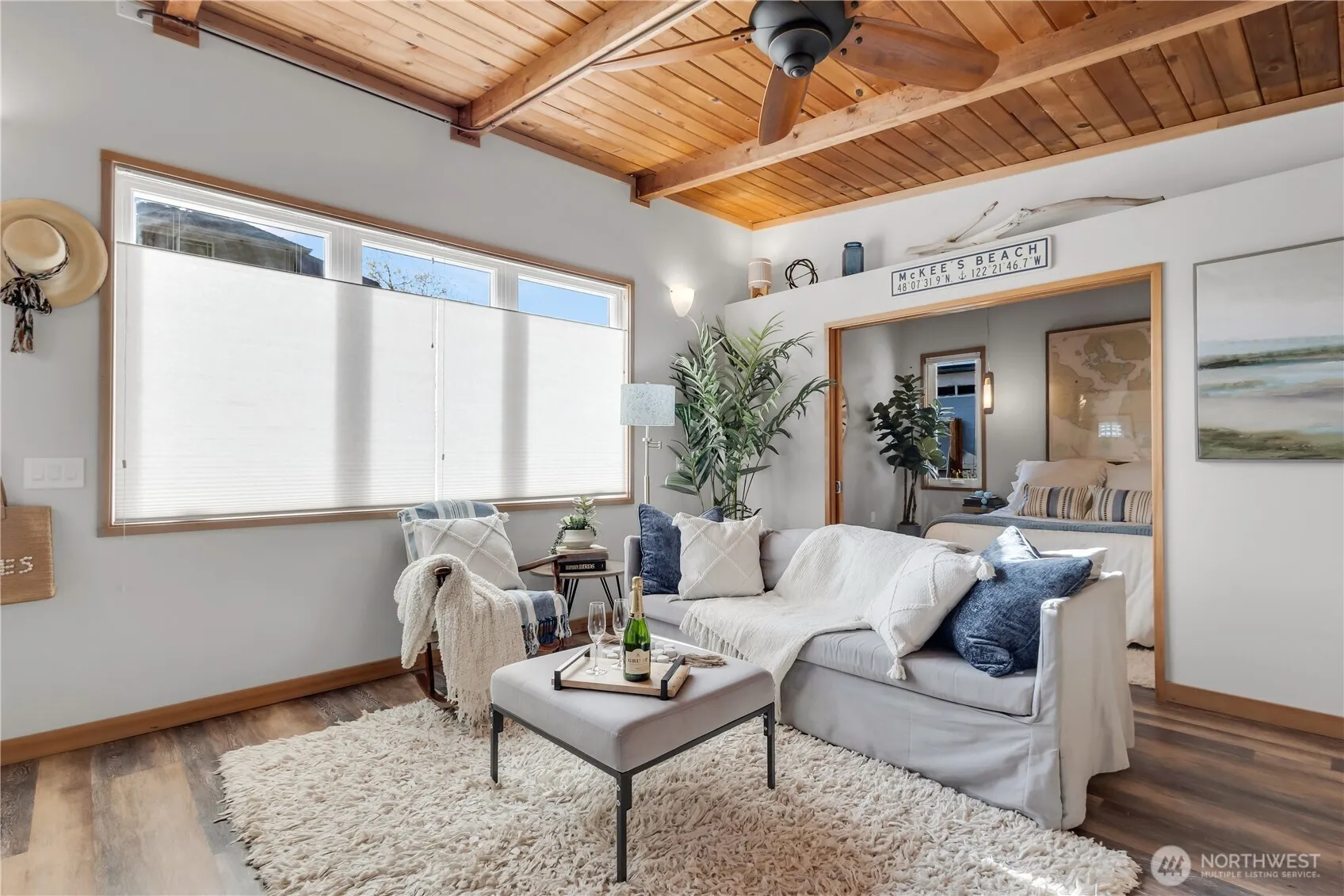 Beach access 2 doors down! No stairs rambler. STR’s allowed! Charming 2 bedroom year-round cottage! 5 beach access points which includes 2 boat launches. McKee’s Beach Cottage – Fully Remodeled, furnished & move-in ready! Thoughtfully re-imagined in 2018 w/new roof, siding, plumbing, electrical, kitchen, bath, full-size laundry, outdoor sink, etc. Vaulted original fir ceilings, open floor plan, waterproof laminate wood plank floors, casement-style windows, ductless heat/AC & tankless hot water. Covered patio/deck w/outdoor sink & BBQ. Peekaboo water view from fenced backyard. Storage shed. 5+ cars/RV/boat parking. From private beach, enjoy watching eagles, seals, orcas & crabbing on Port Susan. Short Term Rentals allowed (buyer to verify).