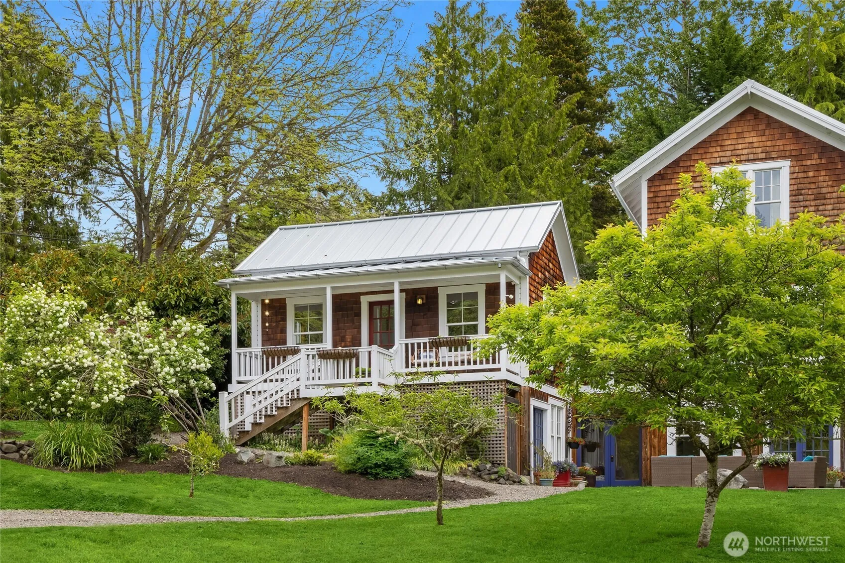 Architecturally remodeled historic 1905 home blends classic charm with stunning modern details. Featuring 3,081 sq. ft. of inspired design—gorgeous wood floors, clawfoot tubs, handcrafted metalwork, vaulted ceilings, radiant heat, and sun-drenched spaces. Cook and gather in the kitchen with butcher block countertops, farmhouse sink, and large island. Retreat upstairs to the primary bedroom with luxurious en-suite bathroom. The lower level offers a family room with French doors to a fabulous patio and private guest space with kitchenette and separate entrance. Set on a lush half-acre lot with rolling lawns, gardens, fire pit, and an outdoor bar. This isn’t just a home—it’s a story you’ll want to live in!