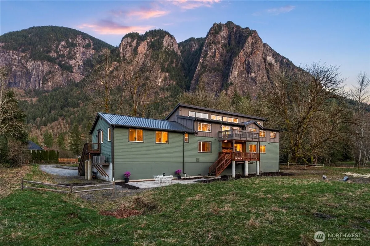 Tucked away in a private sanctuary w/ breathtaking Mt. Si views, this exceptional home offers luxury & nature in perfect harmony. Of its 7.43 acres, only ~1 acre is buildable, the rest is preserved as nature intended, offering privacy, & reduced property taxes through the Open Space Taxation Prog. Built to exceed King County’s 100-year floodplain requirement, the home features a 7.5-ft crawlspace for added security. Inside, enjoy vaulted ceilings, cedar-framed windows, slate floors, quartz counters, & a gourmet kitchen. The ADU is ideal for guests or income, while the private Snoqualmie River access, & daily wildlife sightings make this a true PNW retreat—just minutes from downtown North Bend, top-rated schools, trails, & Snoqualmie Falls.