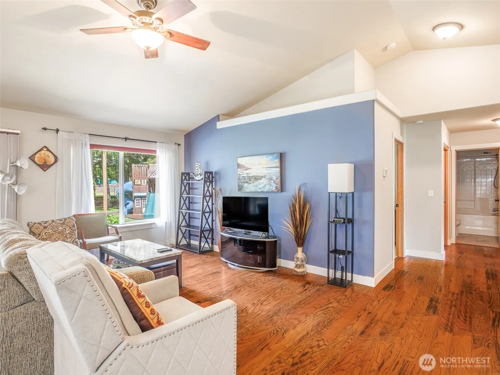 Beautifully updated one-level home in a quiet and established neighborhood. Corner lot with huge & level backyard (fully fenced). Enjoy gardening in your garden beds and summer BBQs on the Trex deck. You will love the open floor plan with hardwood in the living area and tile in the kitchen. The kitchen has upgraded countertops and appliances that stay. This home has tons of storage space with a large storage shed, a finished 2-car garage with built-in work shelves. You will appreciate how well-maintained this home is. Additional features include new AC, new carpets in bedrooms, sprinkler system in front yard, cabana, playset & a covered front porch. Conveniently located just minutes from I-5 for easy commutes.