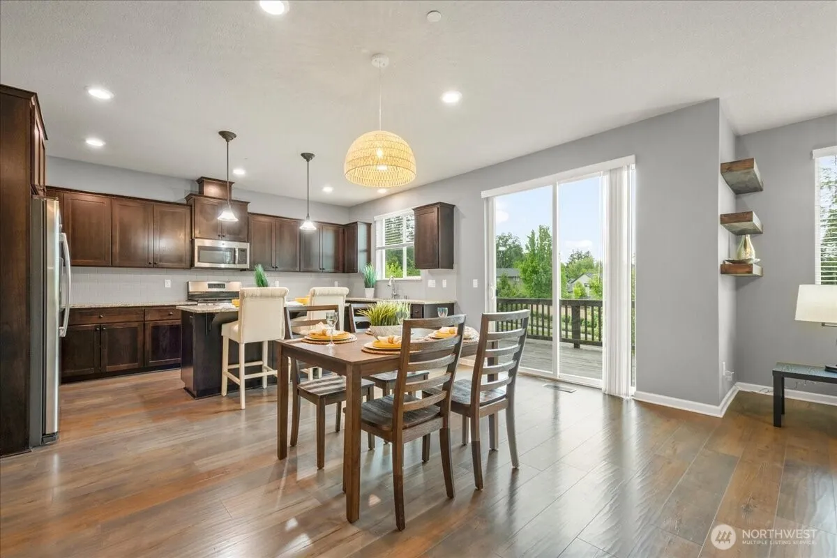 This exquisite luxury residence exemplifies sophistication and elegance, offering an unparalleled living experience. Upon entering the foyer, one is immediately struck by the refined ambiance that permeates the entire home. The kitchen boasts an island, a gas stove, providing an open gourmet setting suitable for all culinary needs. 4 stunning bedrooms, Office on the main floor, 2381 square feet, 2-1/2 Baths, Gas Fireplace, built ins, eating bar, back deck, fully fenced backyard, Covered front Porch, 2 Car Garage. This includes an open floor plan with high ceilings. Primary Bedroom Features full bath w/ Dual Sinks, Soaking Tub, Toilet Closet, Large WI-Closet. All appliances included plus chest Freezer & EV Charging Station in garage.