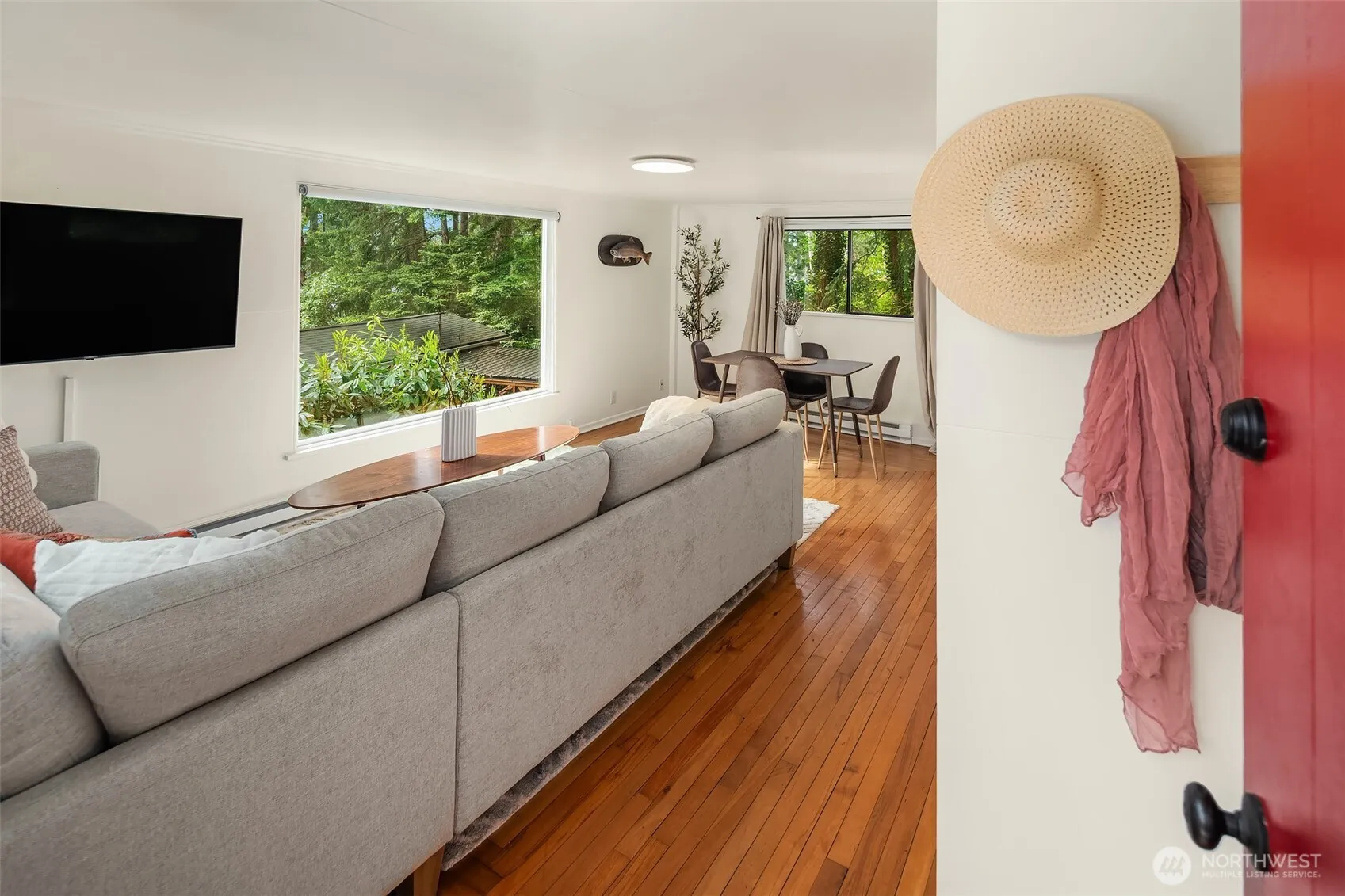 Nestled among madrones, maples, and cedars on over 1/3 of an acre, this storybook 1948 cottage captures the essence of island living. Peek-a-boo views of Colvos Passage filter through picture windows, bringing the outdoors in and bathing the space in natural light. Thoughtfully updated, it features original hardwood flooring, a remodeled bathroom, and a charming vintage-inspired kitchen with a classic-style fridge and new lighting. A new 2-bedroom septic system (2023) offers long-term peace of mind. Located on a quiet dead-end street on Vashon’s famed West Side—just moments from beloved farms, forested trails, and public beaches like Fern Cove —this home is a serene retreat made for simple, joyful living.