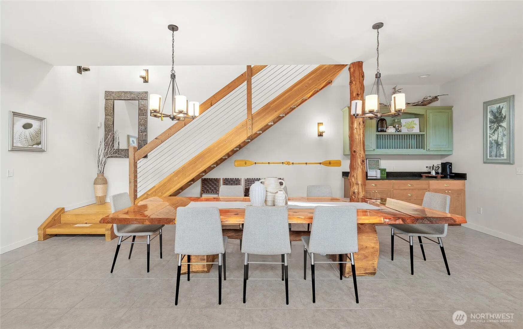 First Floor Primary Living on Rare low-bank waterfront in Downtown Allyn! 88′ of bulkheaded frontage and ownership of 50′ of tidelands-harvest oysters and clams from your own beach! This home is beautifully updated with new carpet, flooring, fixtures, vanity, and a custom wood skybar. Enjoy a newly covered patio for year-round enjoyment of the outdoors. Take in views of Orcas, Seals, and Eagles as you enjoy the rhythm of the tides. Open-air great room with a chef’s kitchen and artisan-crafted dining table. Main-level primary suite, 2 bedrooms, loft/office, radiant heat, tankless water. Walk to downtown Allyn’s marina, shops, and dining with golf just up the hill. A True Coastal PNW Waterfront Gem.