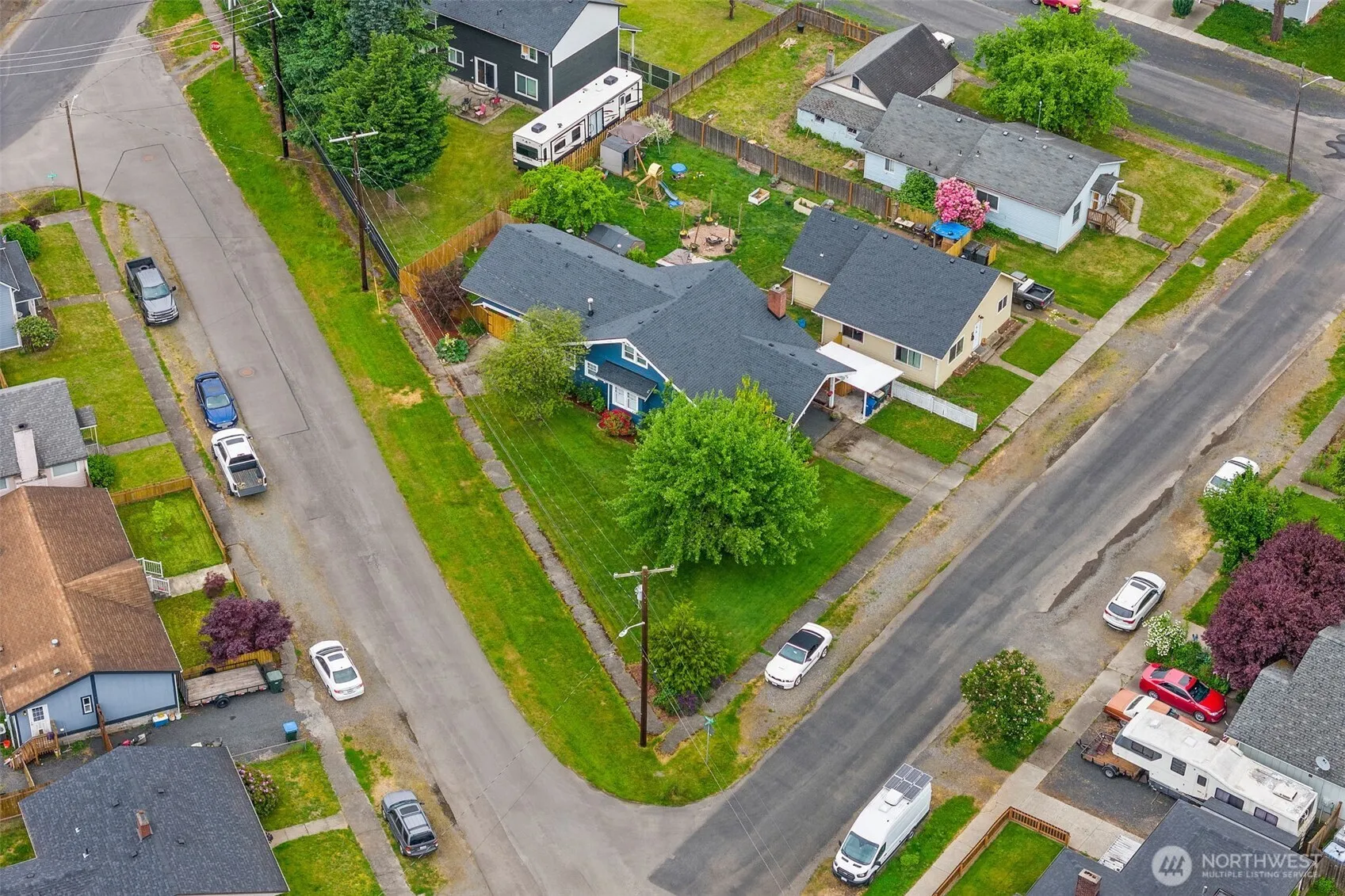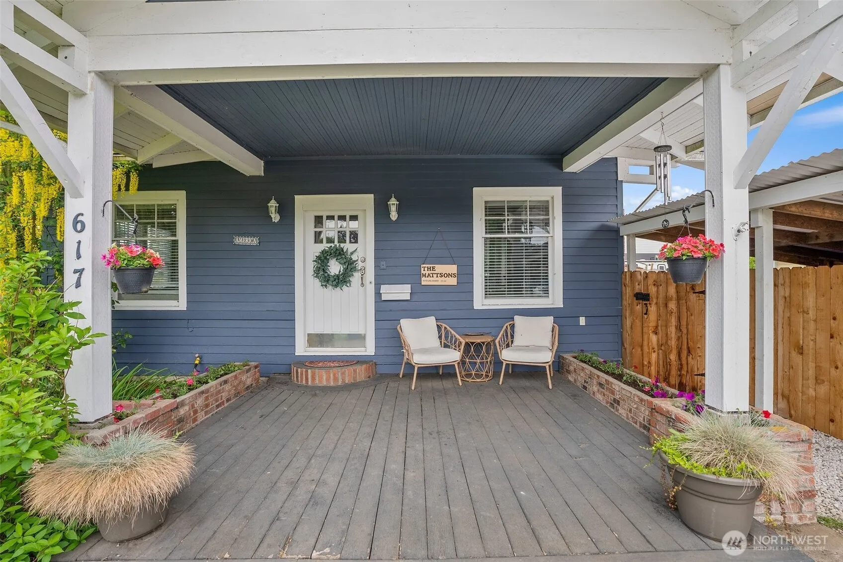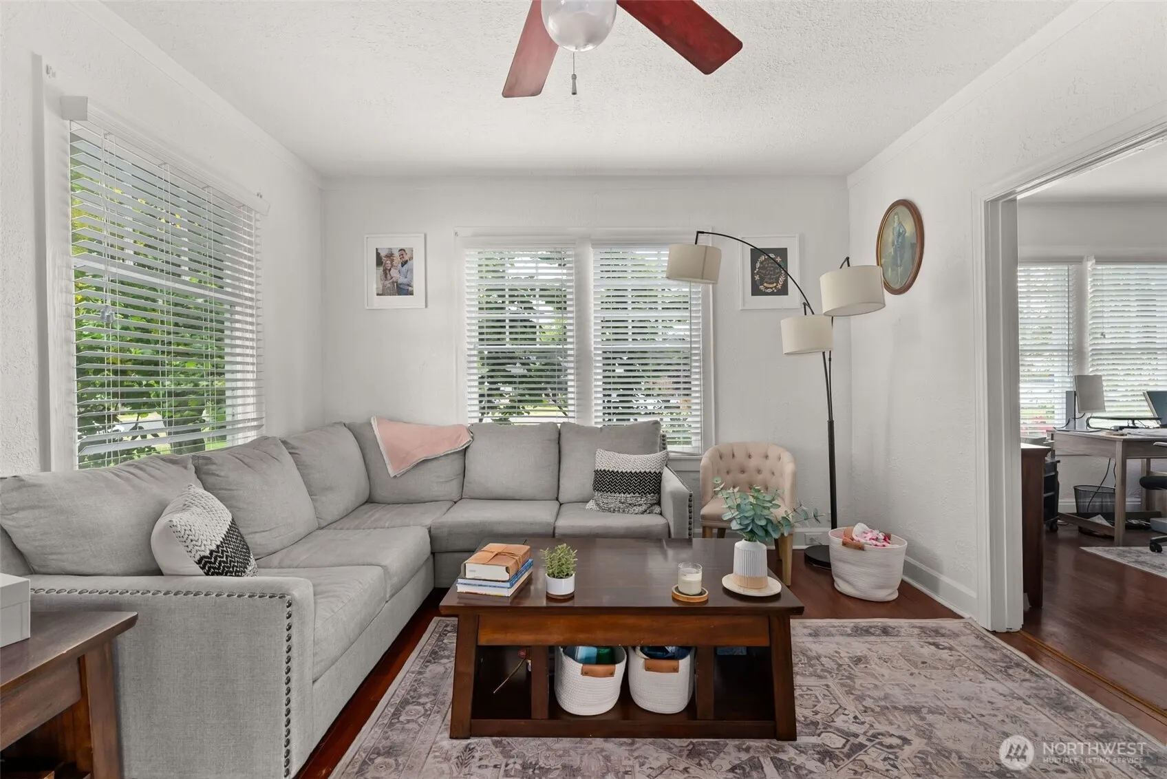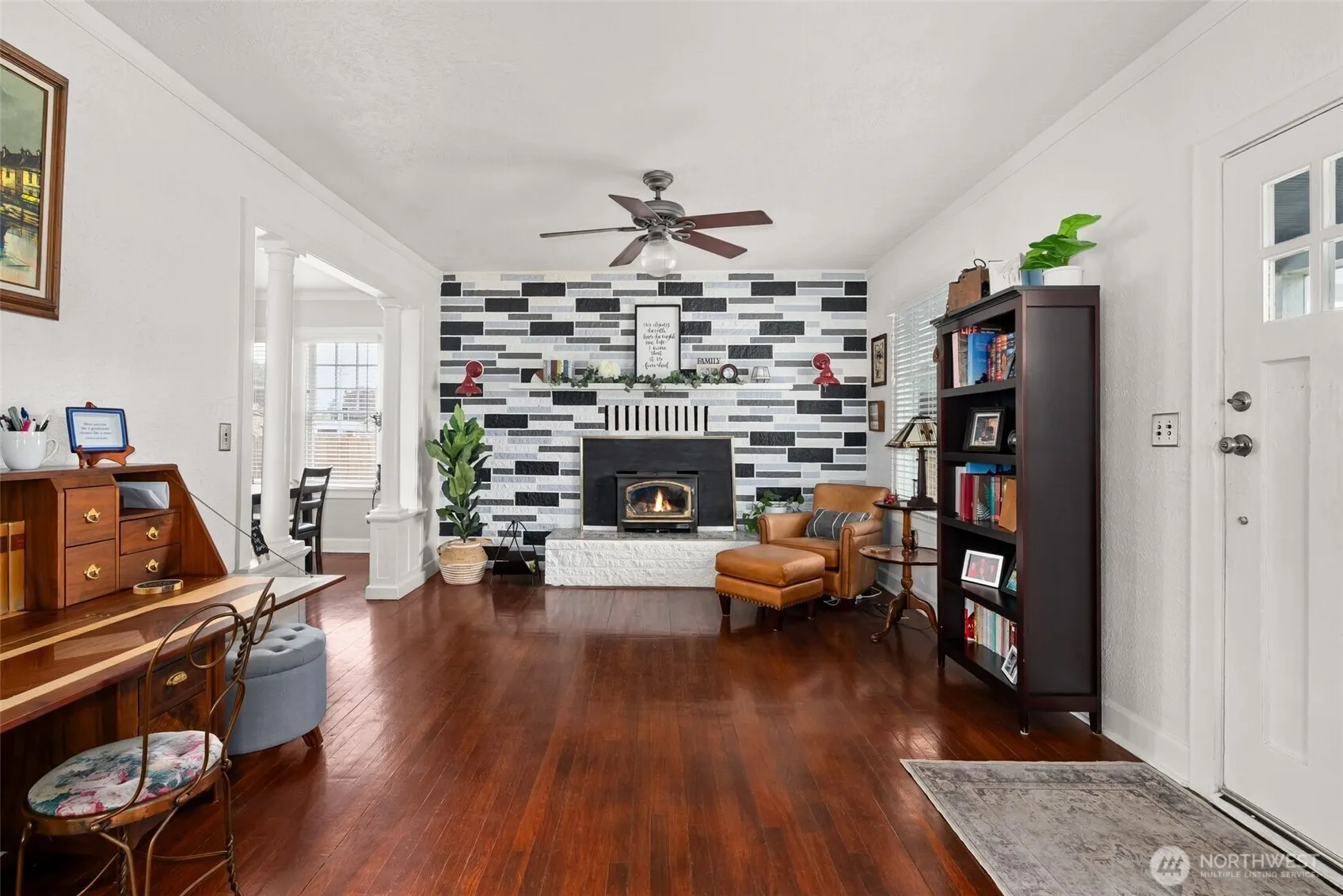 Beautiful! Classic craftsman meets modern updates. Charming home on a corner-lot with original hardwood floors and wood fireplace. Open living and formal dining flow into a renovated kitchen with granite counters, white cabinets, and eating bar. Main floor features a spacious office (possible bedroom) and updated full bath with vintage charm. Upstairs offers three bedrooms, including a HUGE primary with an updated ensuite bath and spacious walk-in closet. Newer carpet upstairs. Newer roof (2021). Updated electrical panel. Private, newly fenced backyard, with covered patio. Large covered front porch for sipping morning coffee. Attached 1 car garage and plenty of street parking. Just 3 min to I-5. Come and see! Ask about the video tour!