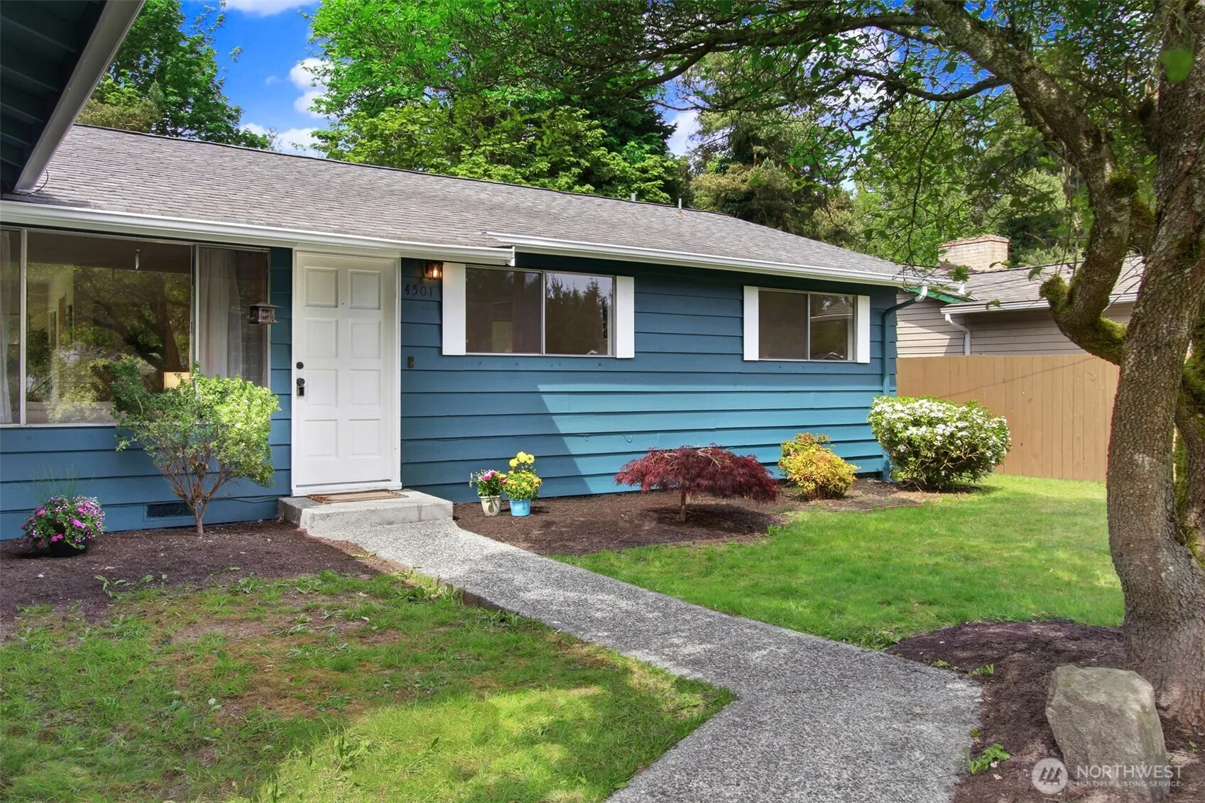 Enjoy easy one-level living with refreshing updates in this light-filled rambler! Just blocks from the park and shopping, this home lives large with open living and dining areas flowing to the eat-in kitchen—prepping meals is a breeze with a brand-new stainless refrigerator, hood, and cook top. Beautifully refinished oak hardwoods, new kitchen/bath/rec room flooring, fresh interior/exterior paint, and new garage doors mean you can move right in. Step out to a level, spacious back yard with new professionally landscaped retaining wall and full fencing. Three bedrooms plus a large rec room with backyard access complete this just-right layout. Stroll to the nearby green space with trails. Light rail station/parking are 1.4 miles away.