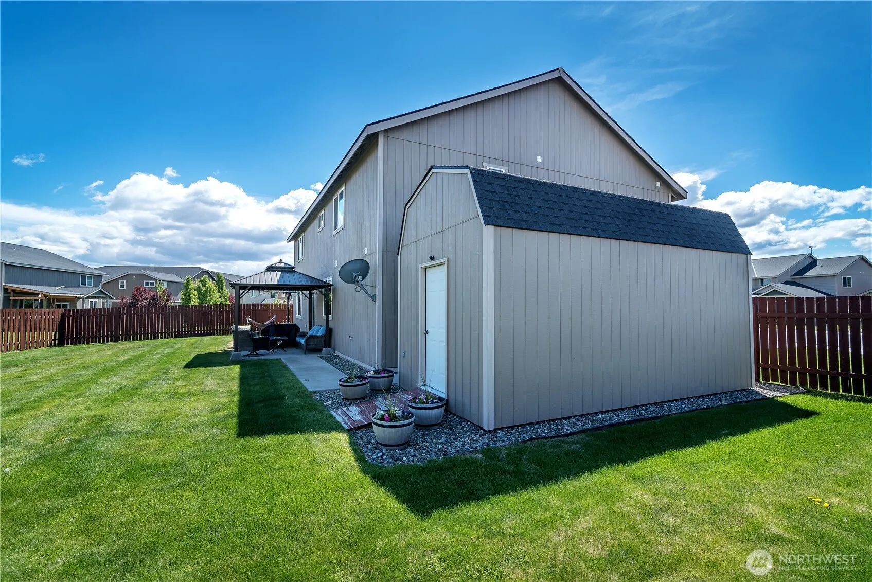 Welcome to this beautifully maintained 4 bedroom, 3 bath home featuring nearly 3000 sq ft of versatile living space. The lower level features a dedicated office, formal dining room, spacious living area, and gourmet kitchen complete with granite countertops and stainless steel appliances, perfect for entertaining or everyday living. Upstairs, enjoy the large bonus room, four generously sized bedrooms and utility room. Situated on a large corner lot, the fully fenced backyard includes a charming patio, beautiful landscaping and garden shed. With a 3-car garage and plenty of curb appeal this home has it all.