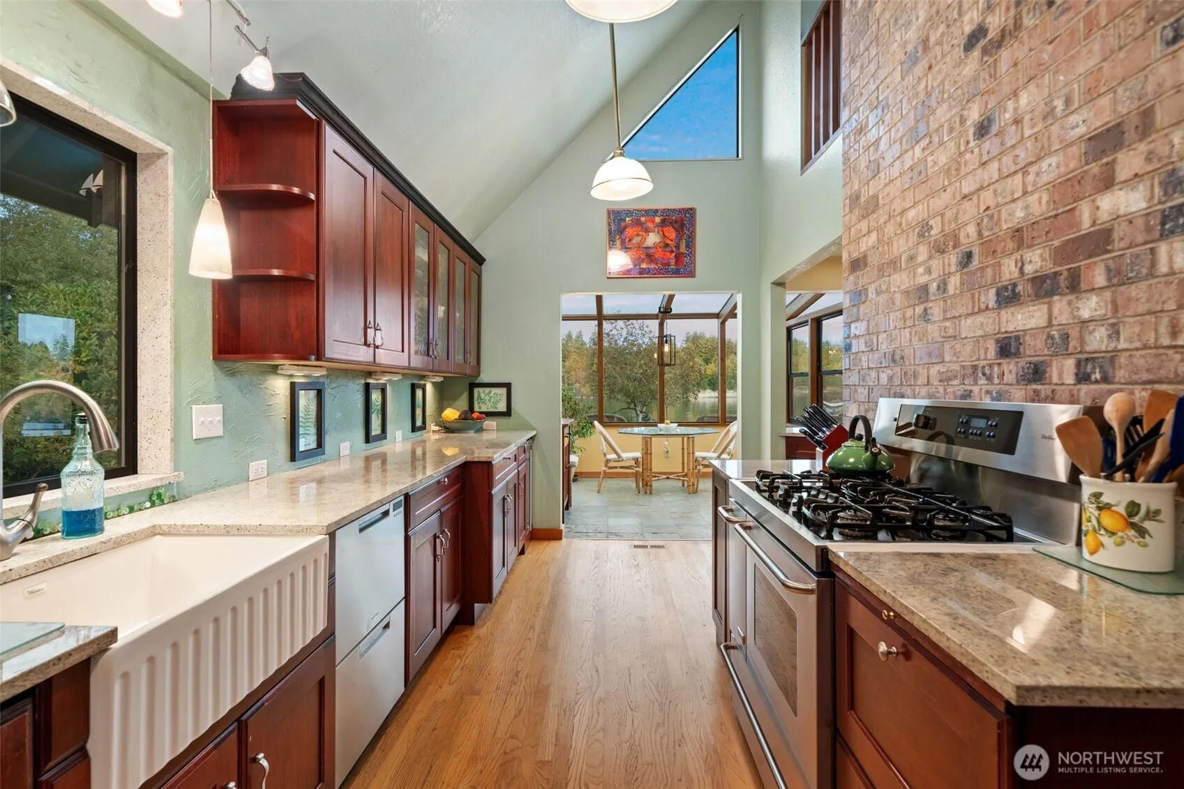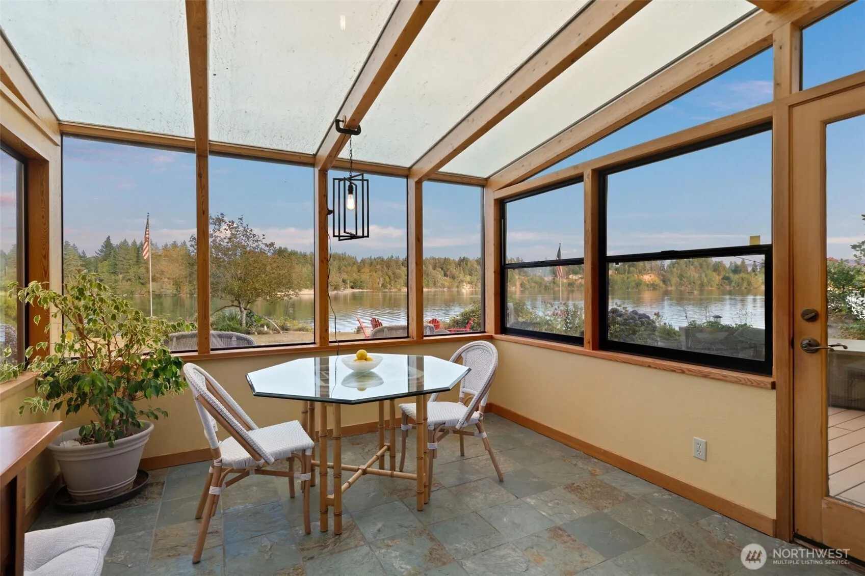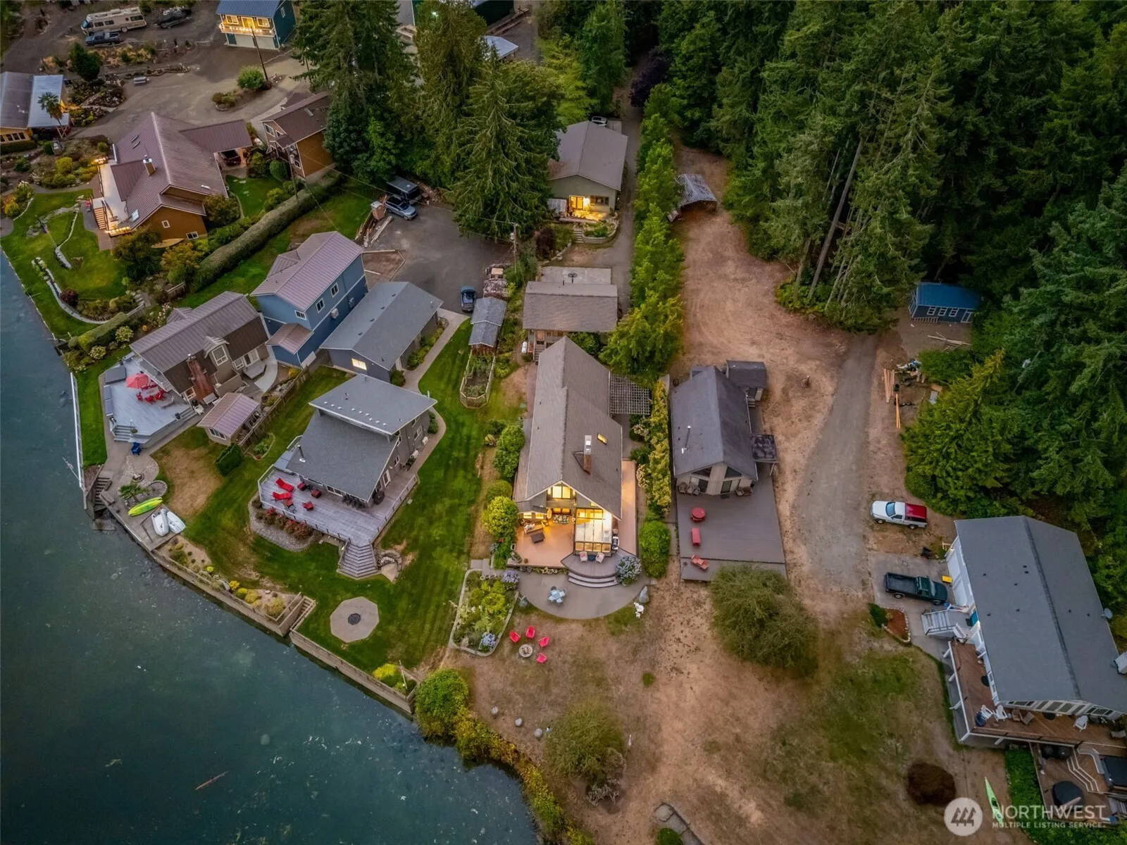 Waterfront living at its finest—1.1 level acres with 67± ft of medium-bank frontage and endless views. This striking custom built home features vaulted ceilings, walls of windows, a sunroom, and spacious decks to savor the scenery. Enjoy a manicured lawn, kitchen garden, and detached 1-car garage with 432 sqft guest quarters and full bath. Approx. 40ft x 40ft shop—once a winery, is zoned for commercial use and offers endless possibilities. Peacefully set on a quiet dead-end street, it’s perfect for year-round living or a dream getaway.