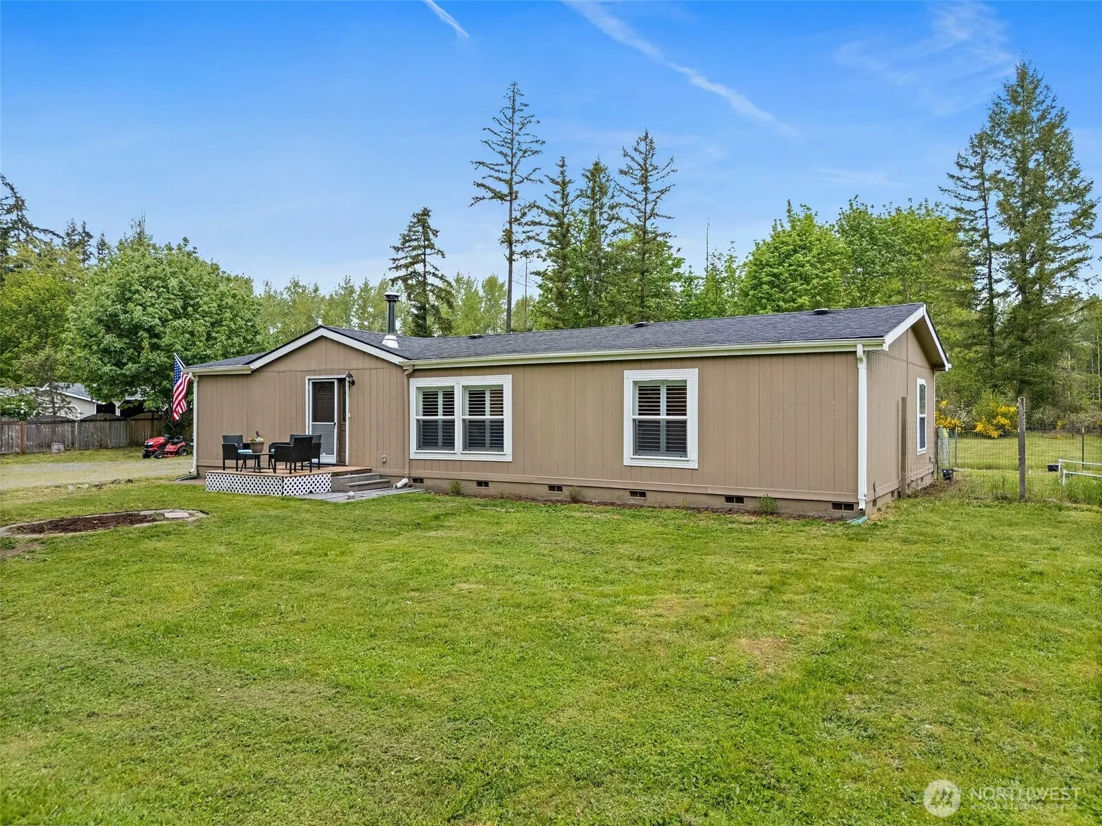 Turnkey 3 Bd 2 Ba Home on 1.16 Acre Parcel! Dream 1,080 Sq Ft 3+ Car Garage/Shop! Fully Fenced Yard w/ Garden Space Backs to Treed Buffer (Lot Extends into Trees). Inside, an Open Floorplan w/ Engineered Hardwood Floors, New Interior Window Shutters, Ceiling Fans, Lights, & Fixtures! Relax w/ New Tankless On-Demand H2O & Wood-Burning Stove! Bright Kitchen w/ New Gas Range, DW, Breakfast Bar, Updated Cabinetry, & Dining Space! Primary Suite = 5 Pc Bath, Updated Carpet, & Deep Closet! 2 Add’tl Guest Bdrms w/ Updated Carpet, Walk-in Closets, & Full Bath! Lrg Utility Rm w/ Tons of Storage! New Gutters! Roof in ’16! Beautiful Maple Tree Centers the Front Yard! Private Cul-de-Sac at the End of the Rd! Mins to Schools, JBLM & Amenities! Must See!