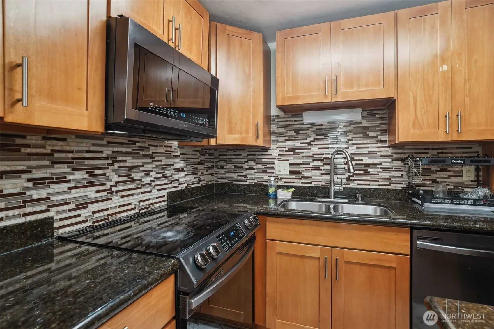 Welcome to “The Treehouse” — a bright and beautifully updated 2BR condo nestled among the trees, offering tranquil, leafy views from your spacious living room and private deck. Enjoy brand new Samsung appliances, a fresh tile backsplash, updated electrical panel, fun bathroom light/speaker combo that makes shower time a treat, and a stylish new ceiling fan. The kitchen features rich wood-toned cabinetry, sleek granite counters, and durable laminate flooring. Bonus perks include deck storage, a separate private storage unit, secured gated entry, an on-site manager, and your own dedicated parking spot. No stairs from parking to your front door! Minutes to light rail, SeaTac, shopping, dining, and more.