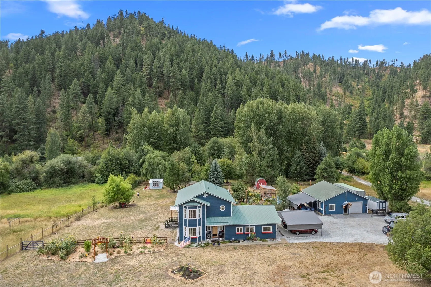 Seller concessions are available. Come to your tranquil retreat in the country. Located on 3+ ACRES bounded by Chumstick Creek; offering so much space and many ways to use it. The welcoming home has 3BR 2BA 2 story 2340 sq ft home has been extensively updated, beautifully decorated, and maintained for both indoor and outdoor living. The shop space has a separate septic system, a large work area, ¾ bath, kitchen, and bonus area. There are 2 outbuildings plus a shed with electricity. Numerous gathering areas are lit at night for dining and parties. This home has been truly loved and cared for, which shows everywhere you look. A professional inspection and a list of upgrades is available upon request. This home is a must-see.
