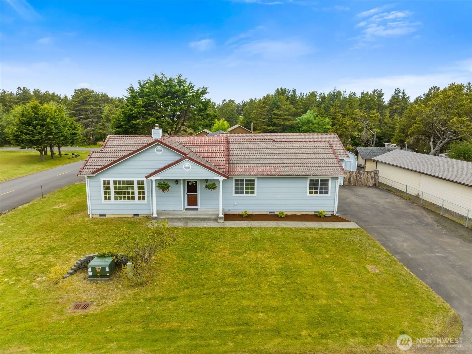 This spacious 2-bedroom, 2-bath home offers an unbeatable location just a short walk from the beach via the scenic Cohassett Beach Trail. Enjoy a bright, open interior featuring vaulted ceilings, a large kitchen, and an abundance of windows that fill the space with natural light. Freshly painted inside and out, the home is move-in ready. Take advantage of the huge unfinished bonus room with a ¾ bath located in the garage—perfect for a potential ADU, guest suite, or family room. This corner lot features two driveways, two garages, lots of storage areas and plenty of space for an RV or boat. Fully fenced side yard with entry gate offers privacy and security& a storage shed.