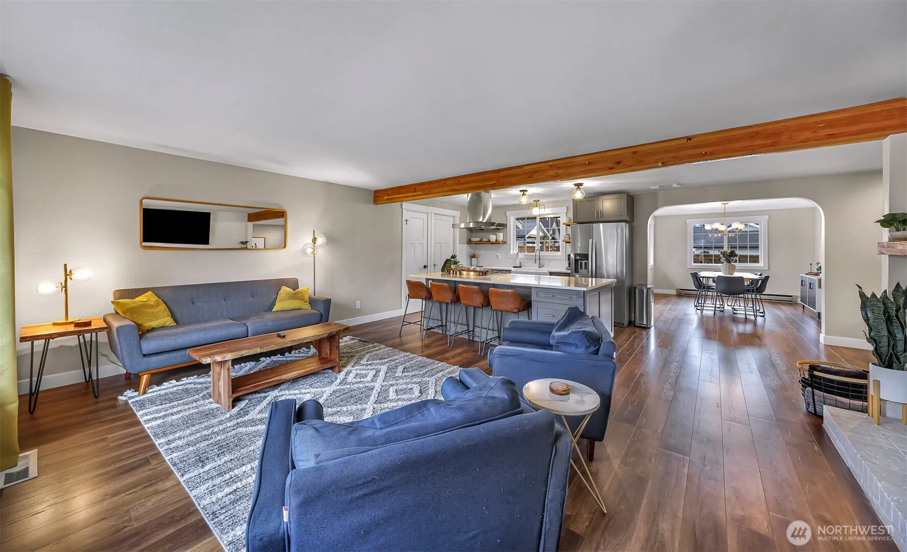 Discover this beautifully remodeled rambler tucked away on a peaceful cul-de-sac in Lynden. Brimming with natural light, the open-concept layout showcases a stylishly updated kitchen featuring quartz countertops, new stainless appliances, and generous cabinet space. Laminate hardwoods, fresh interior paint, and updated baths add a modern touch throughout. Unwind by one of two inviting fireplaces or take advantage of the flexible media/bonus room. The home offers three well-sized bedrooms, including a lovely primary suite with attached bath. Step outside to a fully fenced backyard complete with garden space, patio, and greenhouse—perfect for outdoor enjoyment. A spacious attached garage rounds out this exceptional home. A true must-see!