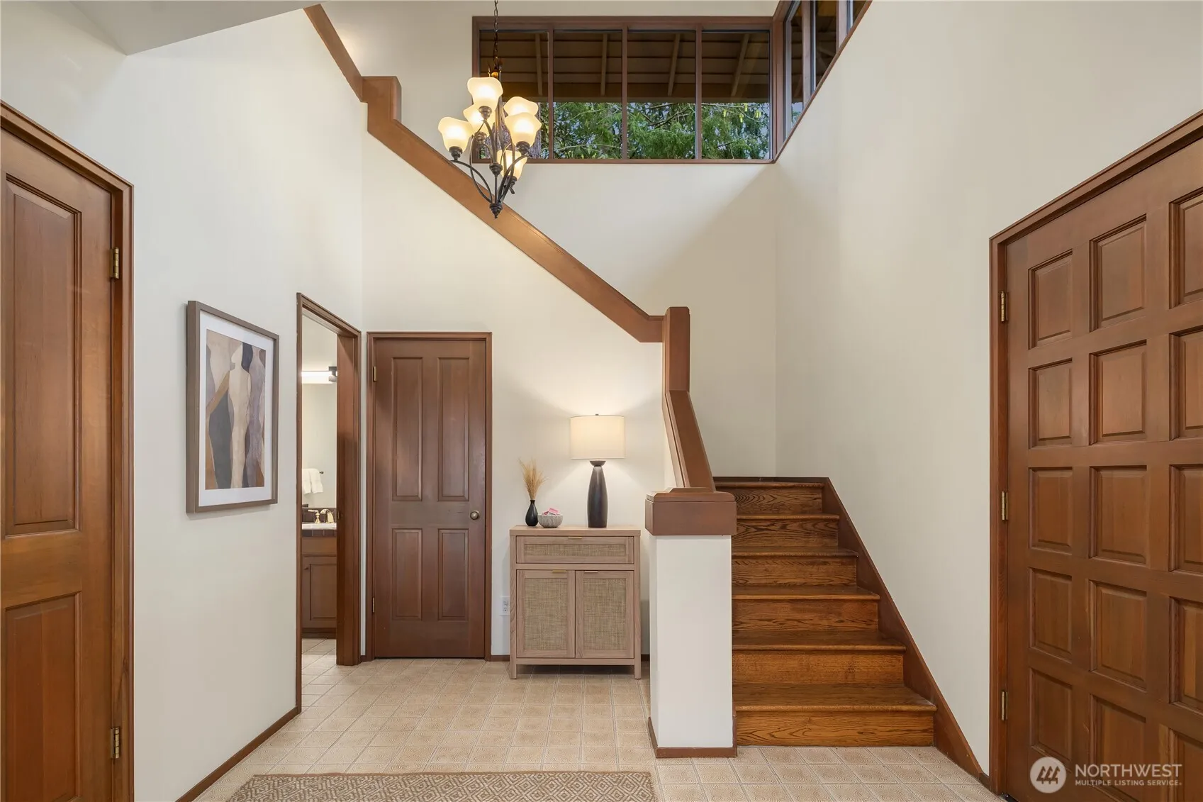 First time on the market! Classic Black and Caldwell Northwest Contemporary meticulously cared for & thoughtfully upgraded throughout. The design showcases an extensive use of warm, clear cedar & rich hardwood flooring. Well-designed floor plan. Soaring 2 story entry. Dual staircases. Remodeled kitchen features cherry cabinetry & slab granite counters. Spacious living rm with fireplace & wet bar. Double doors to the dining rm with walls of windows. Cozy family room off kitchen with a gas fireplace. Primary suite; French door to a private covered deck, 2 closets & a remodeled 3/4 bath with skylight. 2nd floor bonus rm. Huge refreshed laundry rm. A/C on 2nd floor. Surrounded by lush, mature landscaping. Enjoy western views of Lake Washington.