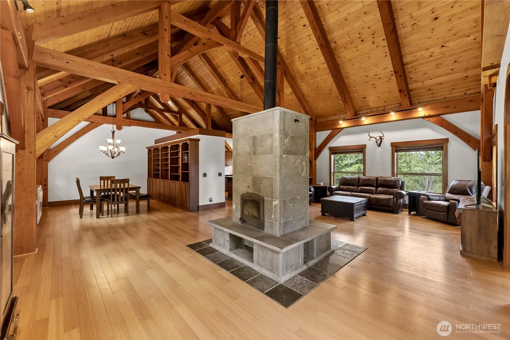 Precisely crafted Timber frame home placed on a secluded 20 acres with ancient timber. Wander the wide trails with vibrant plants and wildlife, bordering State land. The stillness of this area provides a more tranquil lifestyle. The gourmet/chefs kitchen has a Viking range, granite countertops, bamboo floors, and an open design. Experience the unmatched slow-cooking power of a Dutch oven with the Finland-made Tulikivi-style soapstone wood stove- perfect for bringing your homemade recipes to life. The detached 2-car garage includes a 3/4 bath and an upper Bunkhouse for a gym, art studio, office, or guest room. Superb area for different uses. The daylight basement is ready to be finished and has its own outdoor entrance.