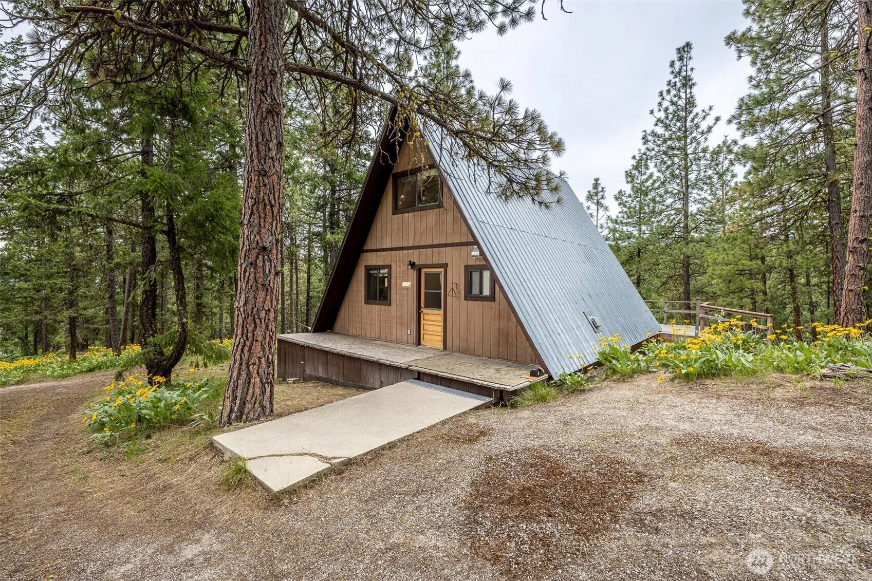 Tucked in the woods just outside Plain, WA, this cozy A-frame cabin offers the kind of privacy that’s hard to find. Set on 20 acres of forested land bordering Wenatchee National Forest, you’ll enjoy endless trails for hiking, skiing, & snowshoeing right from your doorstep. From the expansive back deck, take in sweeping views of distant mountains & the surrounding evergreens. Inside, the classic A-frame architecture exudes rustic charm, while outside you’ll find a detached garage with workshop, wood shed, & a wood-fired sauna for unwinding after a day outdoors. Just 30 minutes from Leavenworth, this is a rare chance to own a large private parcel in a prime recreational area, perfect as a personal retreat or an outdoor adventure basecamp.