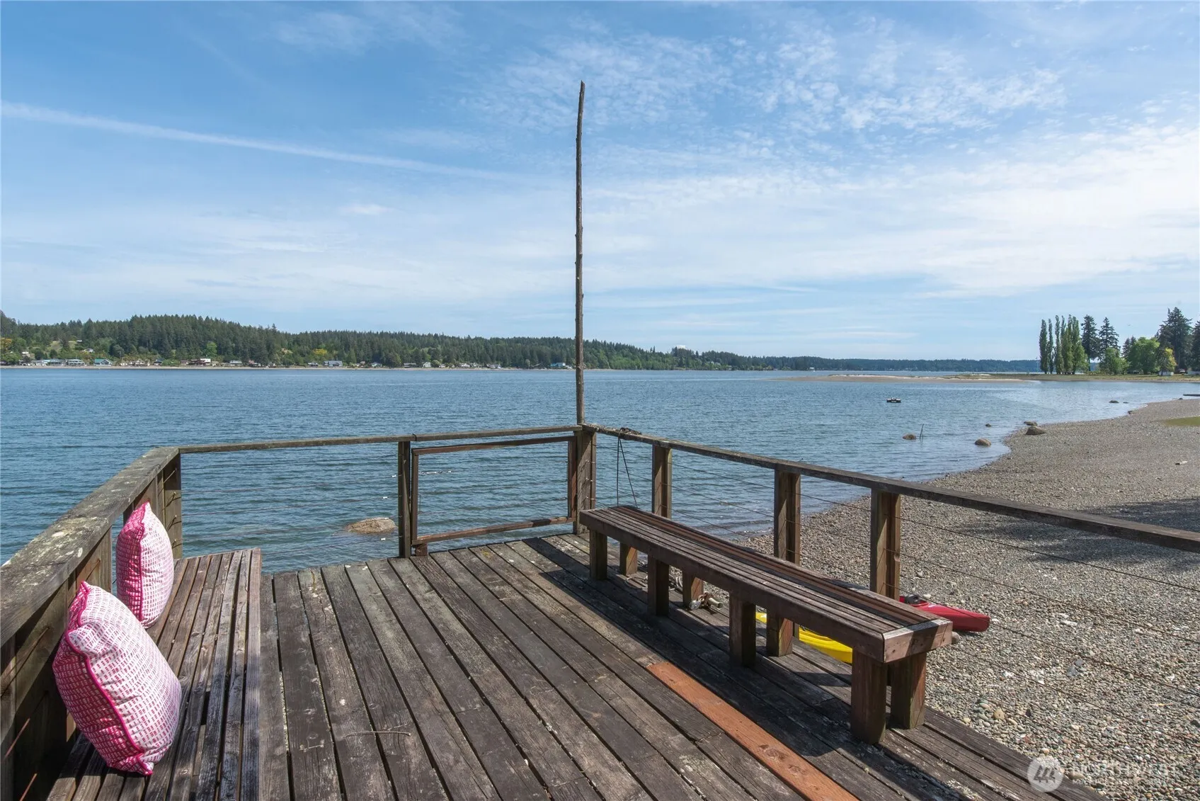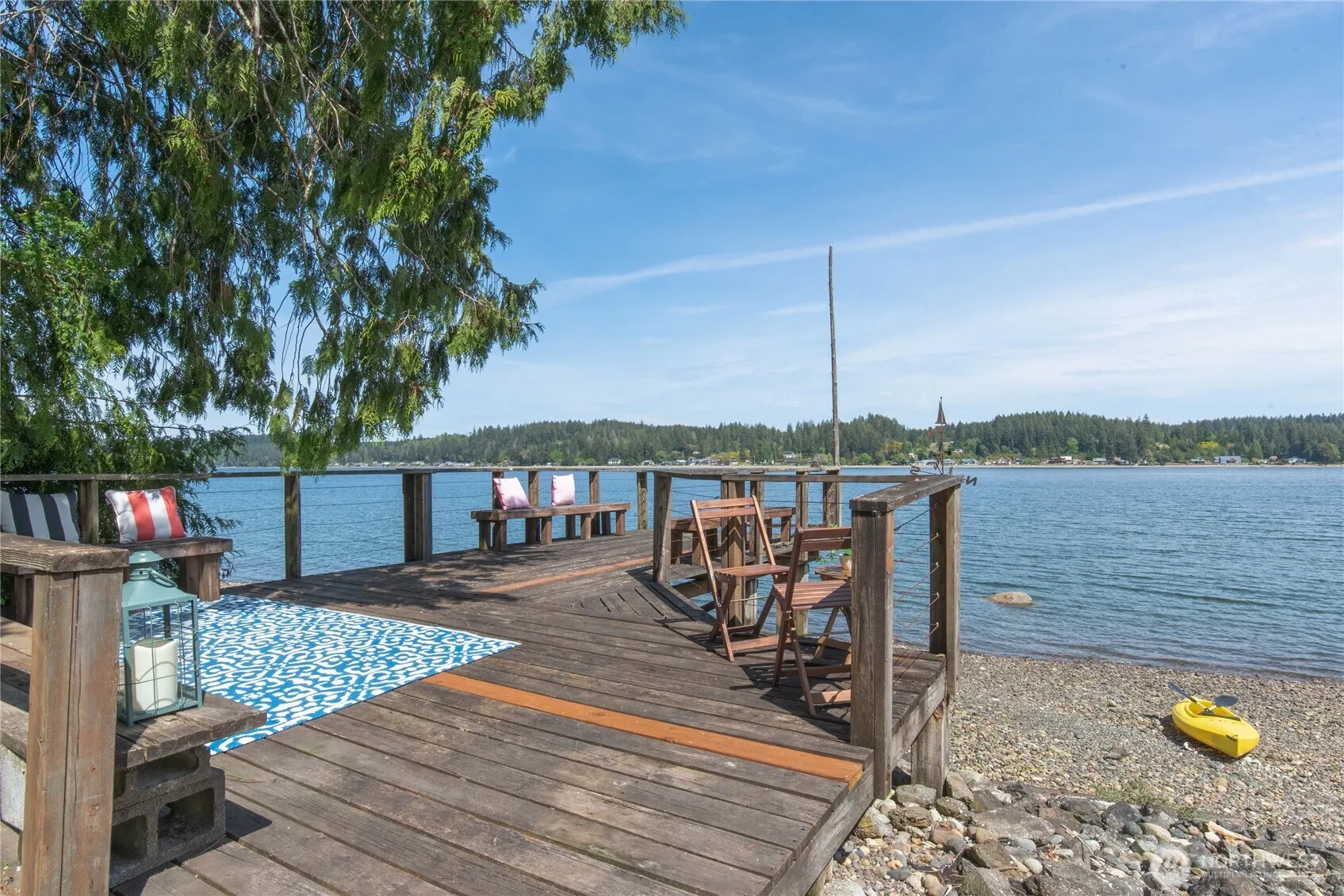 Escape to this peaceful waterfront property with views of Mt. Rainer. This charming 2 bedroom, 1-1/2 bath home sits on .24 acres away from the road, providing privacy and tranquility. With ample parking for guests, room to grow, add on, or create your own campsite getaway. Enjoy kayaking from your own beach to the Allyn Waterfront park for dinner or that perfect summer treat, or BBQ and have dinner on your own private dock that sits over the water. Don’t miss this rare opportunity to own a slice of waterfront paradise in the PNW.