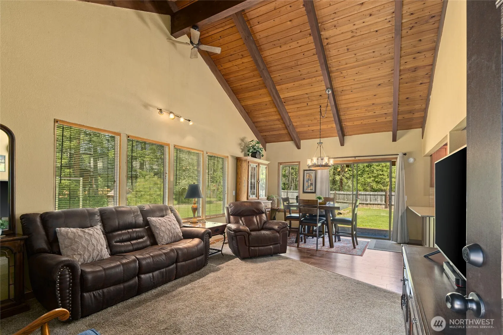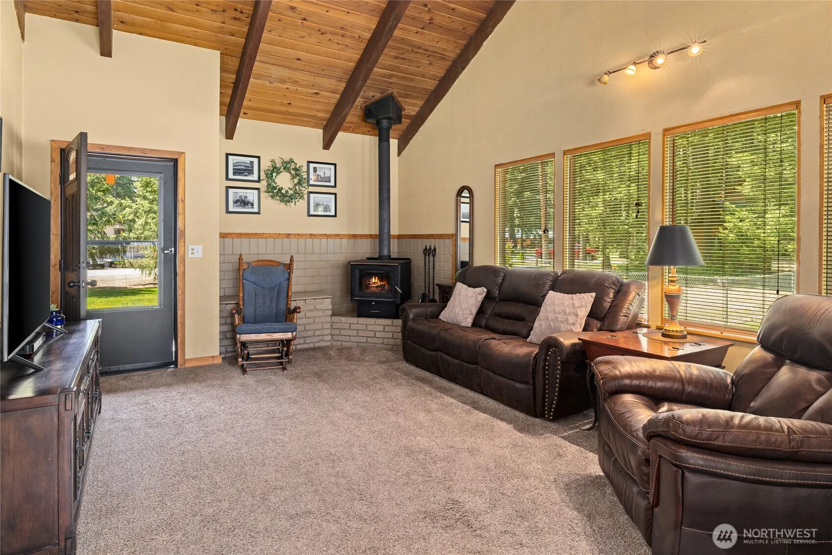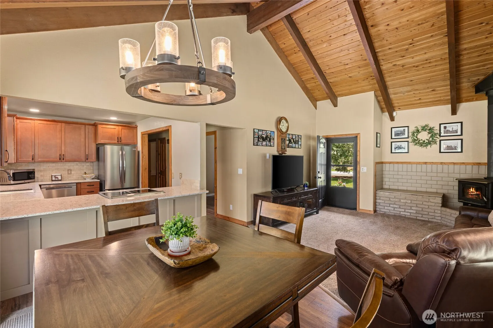 Immaculate move-in ready rambler in Wildwood, just a short stroll to Speelyi beach on Lake Cle Elum. Sunny, over-sized corner lot, fenced backyard, fruit trees, & seasonal stream, surrounded by evergreens & local wildlife. Spacious living room with wood stove, & dining area, open onto the deck & patio. Ample storage in the updated kitchen with quartz counters, maple cabinets, & SS appliances. Warmth abounds in the family room w/propane stove, wet bar, vaulted ceiling, exposed beams & loft/w attic storage. Primary ensuite bedroom + 2 additional bedrooms, (2 bdrm septic). Level lot offers plenty of RV/trailer parking with 2 car garage & carport. Enjoy Suncadia’s nearby trail system in the mountains with four seasons of recreation at your door