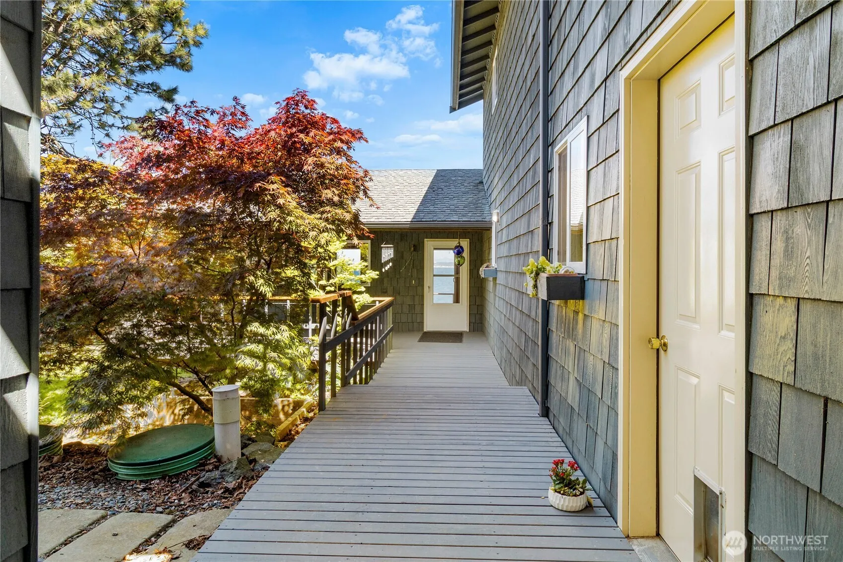First time on the market, this custom waterfront home captures the spirit of the PNW with panoramic views of the Cascade Range and the Canadian coastline. Step into a naturally light-filled open-concept layout, featuring hardwood floors, a spacious kitchen with a double range, and an island cooktop facing the living room—perfect for a social chef. Homes built for functionality; Bedroom 1 & 2 have private sinks and share a Jack-&-Jill bath. The primary suite includes a walk-through closet, a full bath, a work nook, and a picturesque ocean view. Covered bridge leads to a den/office above the detached shop, creating a perfect, secluded working space. Enjoy a low-maintenance yard, private beach access, a mooring buoy, RV parking, & much more.