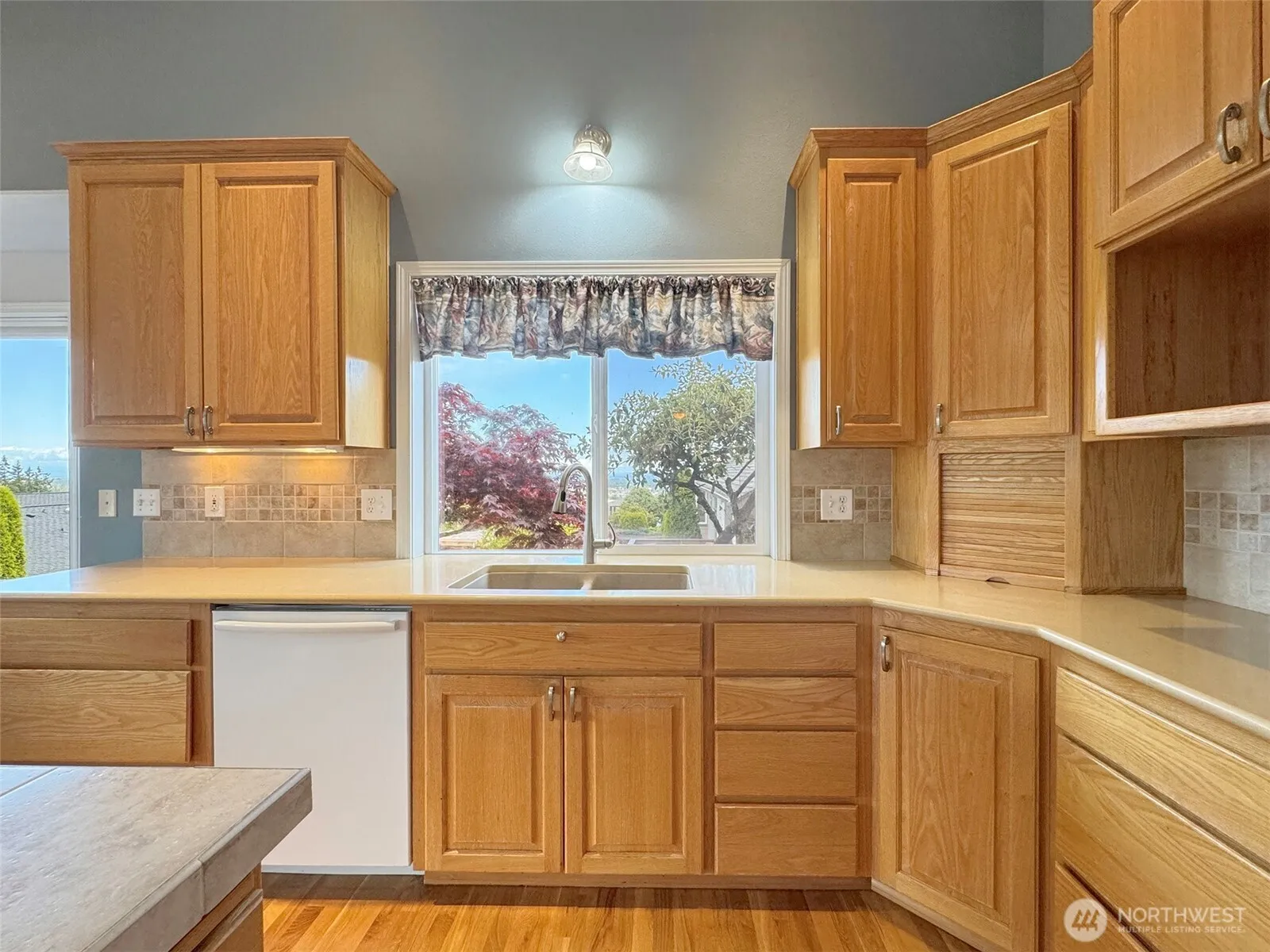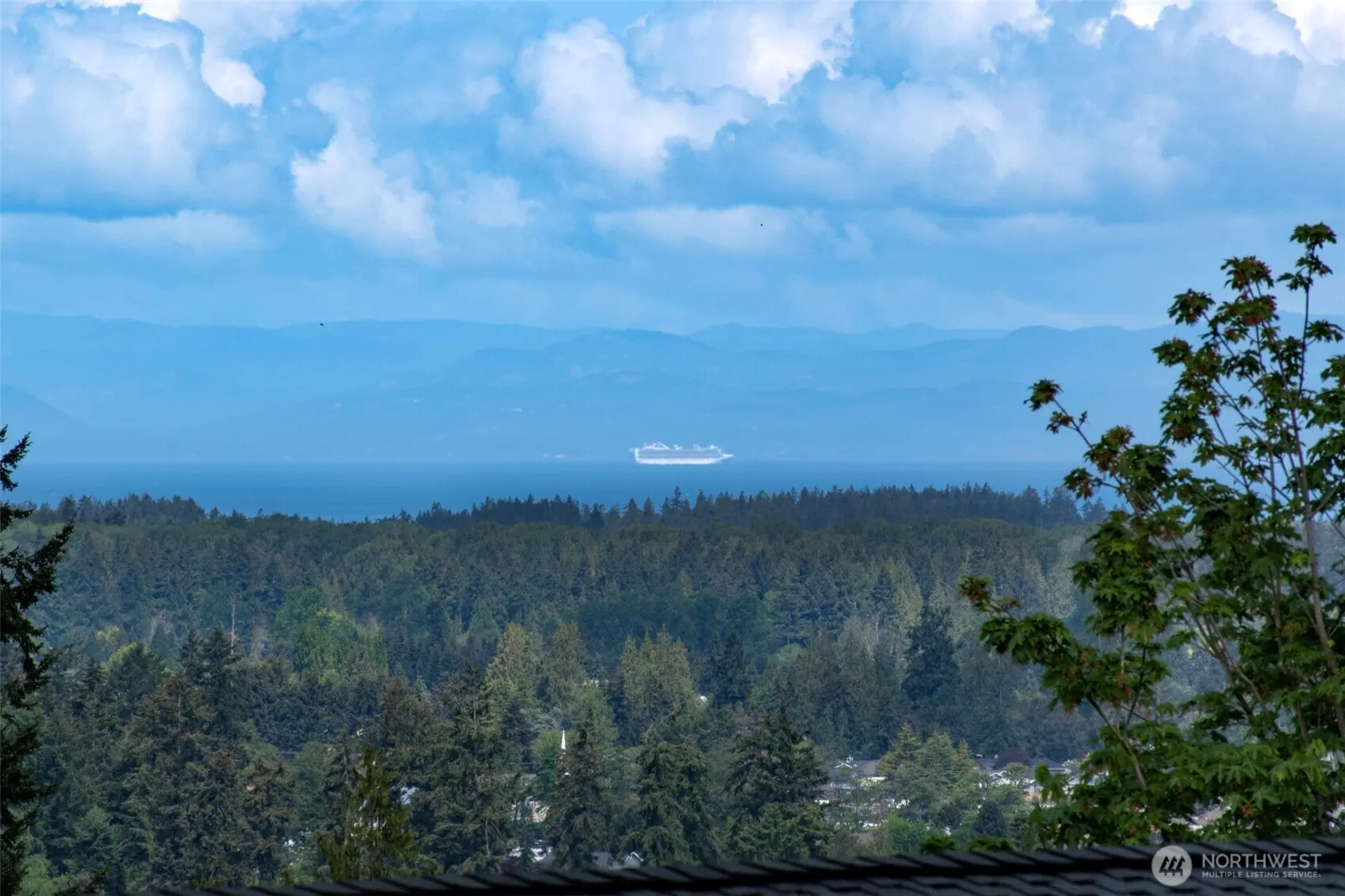 Enjoy stunning water views from this beautifully maintained 2 bed, 2 bath custom built Terhune home, 1958 sq. ft. of light filled living. Vaulted entry leads to two bonus rooms with French doors perfect for home office, hobby area or guest space The open kitchen, dining, and living areas are designed to maximize the views and natural light. Storage galore with 3 large hallway closets. Primary suite features heated bathroom floors, walk-in closet, and direct access to back deck. Step outside to a spacious, private back deck ideal for relaxing or entertaining, complete with retractable awning for shade and comfort. Yard is beautifully landscaped for easy-care, no-mow maintenance. Attached 2-cargarage with workbench.