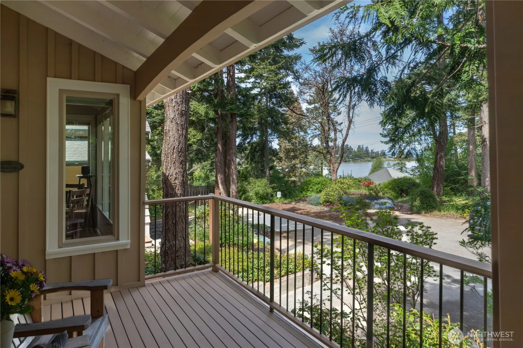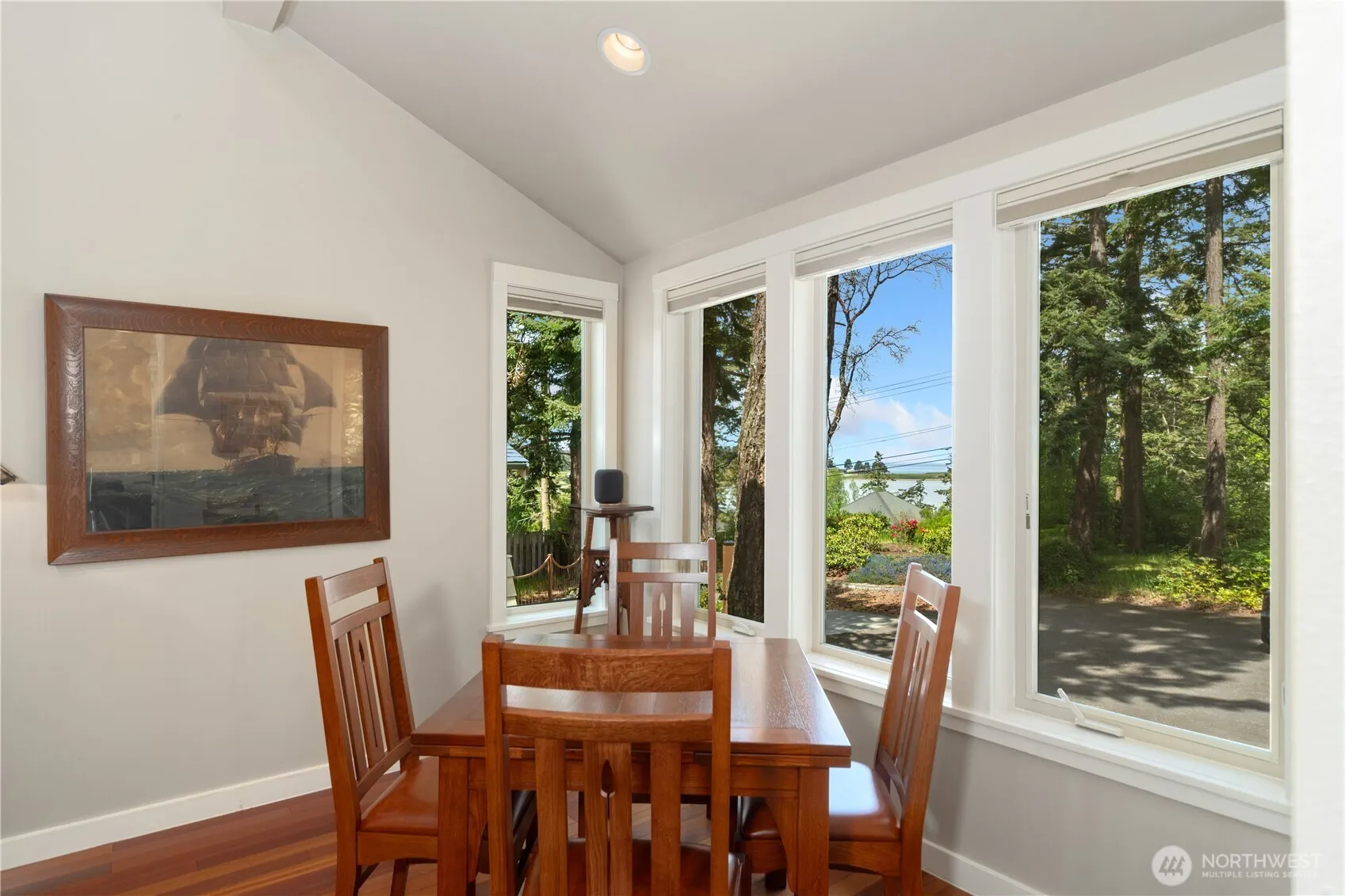 This unique detached home in the sought-after Tree House community offers stunning views of the Chinese Garden pond & the Straits beyond—visible right from your dining table! Known for smart, space-efficient designs, this home features an updated kitchen with stone backsplash & new countertops. The open-concept main floor includes a cozy propane fireplace, living/dining area & access to the beautifully maintained common space. Also on the main level: a renovated bathroom with tiled shower & a spacious primary bedroom with a walk-in closet. Upstairs, you’ll find a bright workspace with a view, a second bedroom, & a full bath. The basement includes laundry & storage. Enjoy daily walks at Fort Worden as it’s just across the street.