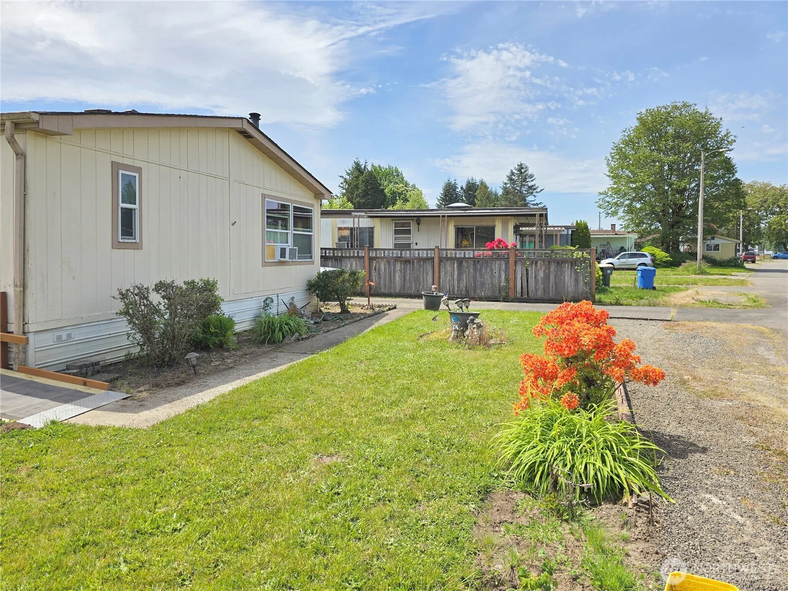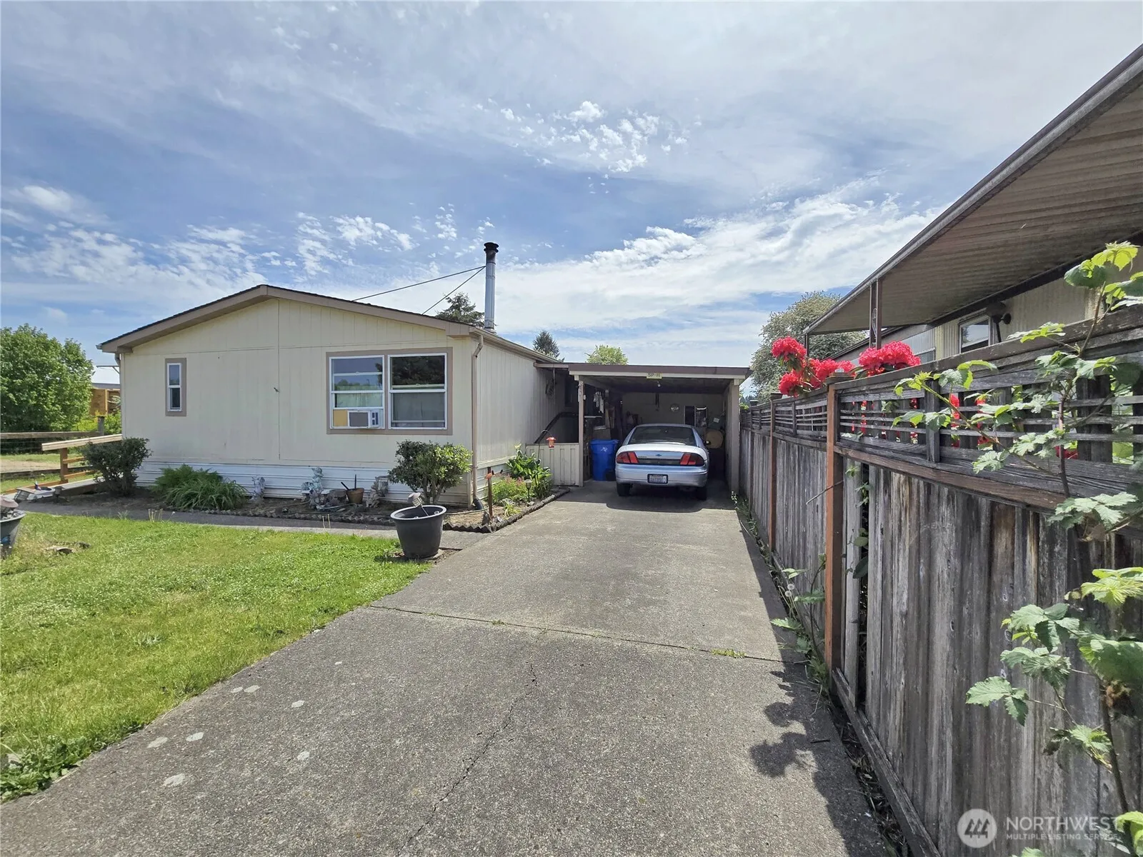 Located in a peaceful 55+ community at the end of the park for added privacy, this 1988 home offers comfort, convenience, and great outdoor space. The updated kitchen features pine cabinets and tile floors. A wood stove in the dining area helps keep utility bills low. The primary bedroom offers a wide opening to the bathroom for easy access. Outside, enjoy a new ramp to the front door, carport, storage shed, woodshed, garden area, and backyard space. All appliances stay, plus lumber to help rebuild the fence, and some additional building material and interior paint are included so you can add your personal touches.