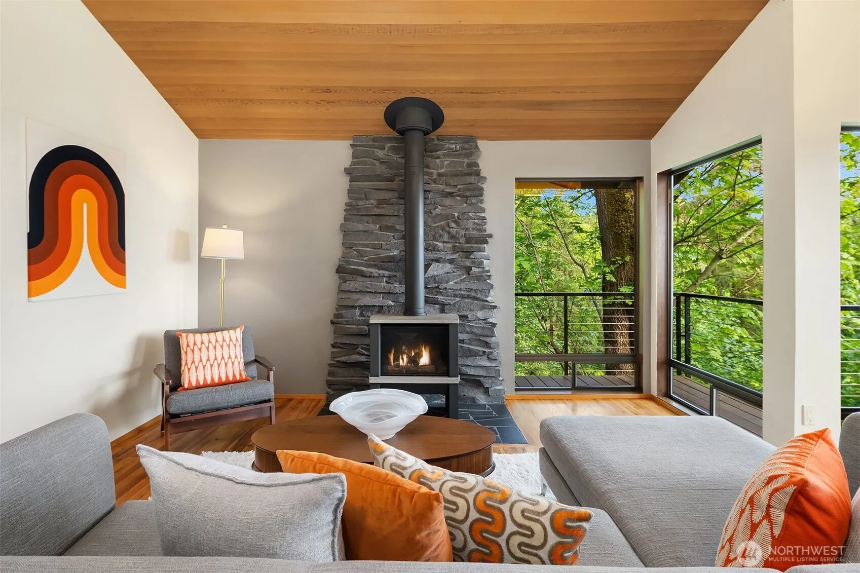Nestled down a peaceful street, this spacious NW gem offers a secluded treehouse feel with breathtaking views. Gather or relax in multiple living spaces spanned by walls of windows framing the lake and mountains. Cooks will love the open eat-in kitchen. Step out for year-round enjoyment on the covered, heated deck, or escape to your vaulted primary suite with spa-like bath, dream walk-in closet, and office/nursery/flex room with view deck. Three more bedrooms (one with a built-in study area) + a huge rec room provide space for everyone. Enjoy the friendly neighborhood vibe with events like Friday Night Street Dinners and a WhatsApp group. Minutes from the island’s top amenities and a short stroll to schools, the library, and Ellis Pond!