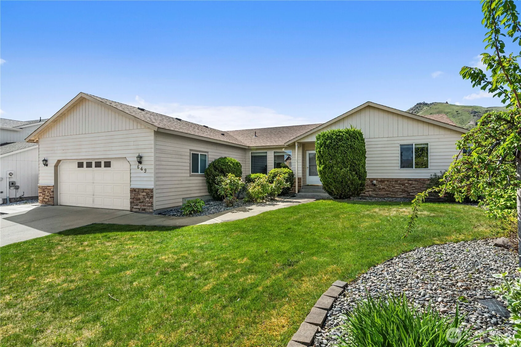 Experience the comfort of single-level living in this inviting Wenatchee rambler with just over 1,600 sq ft. The generous kitchen with pantry is perfect for gathering, while a flexible dining room or den offers space to create your own cozy nook. The private primary suite is thoughtfully set apart from the guest bedrooms for peaceful retreat. Step into the fully fenced backyard—ideal for summer evenings, pets, or play—with irrigation and a handy outbuilding. Enjoy views of Saddlerock and quick access to Mission Ridge and miles of trails. A true blend of comfort, convenience, and connection to the outdoors.