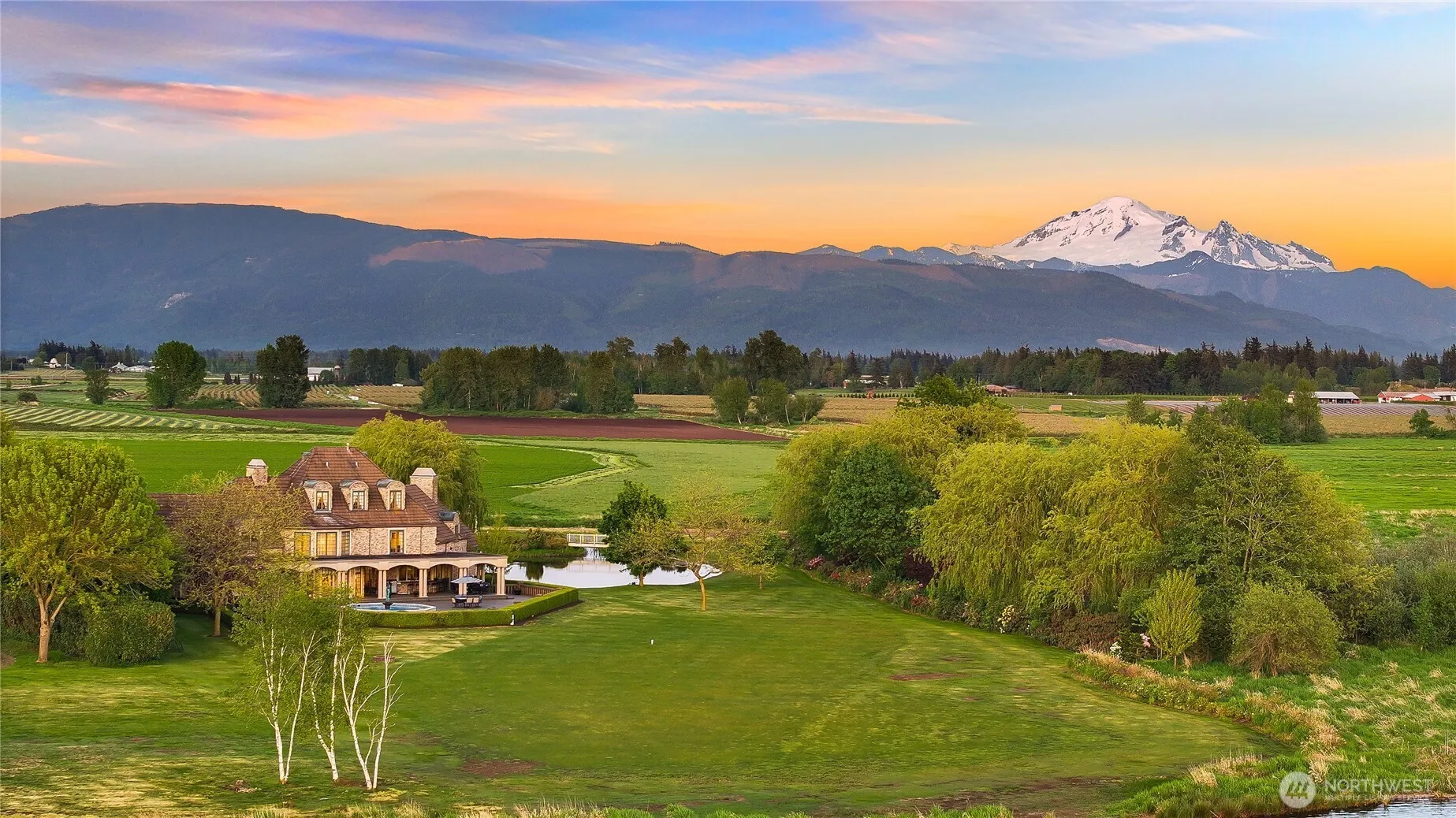 Rarely does the world of opulence so harmoniously blend with comfort of everyday living, offering a space that is both luxuriously appealing yet gives you that true feeling of being home. Superb craftsmanship & incredible spaces for gathering are the hallmarks of this 7,000 square foot French Country estate on over 10 acres at the end of a private lane. Enjoy a spectacular primary bedroom with a fireplace and two walk in closets, all bedrooms with on suite baths, and a one bedroom mother in law suite with its own private entrance. Wake up to epic sunrises on Mt.Baker while sipping your coffee and relax in the evening with a glass of wine watching the sun set over picturesque Wiser Lake. A legacy property, truly in a category of its own.