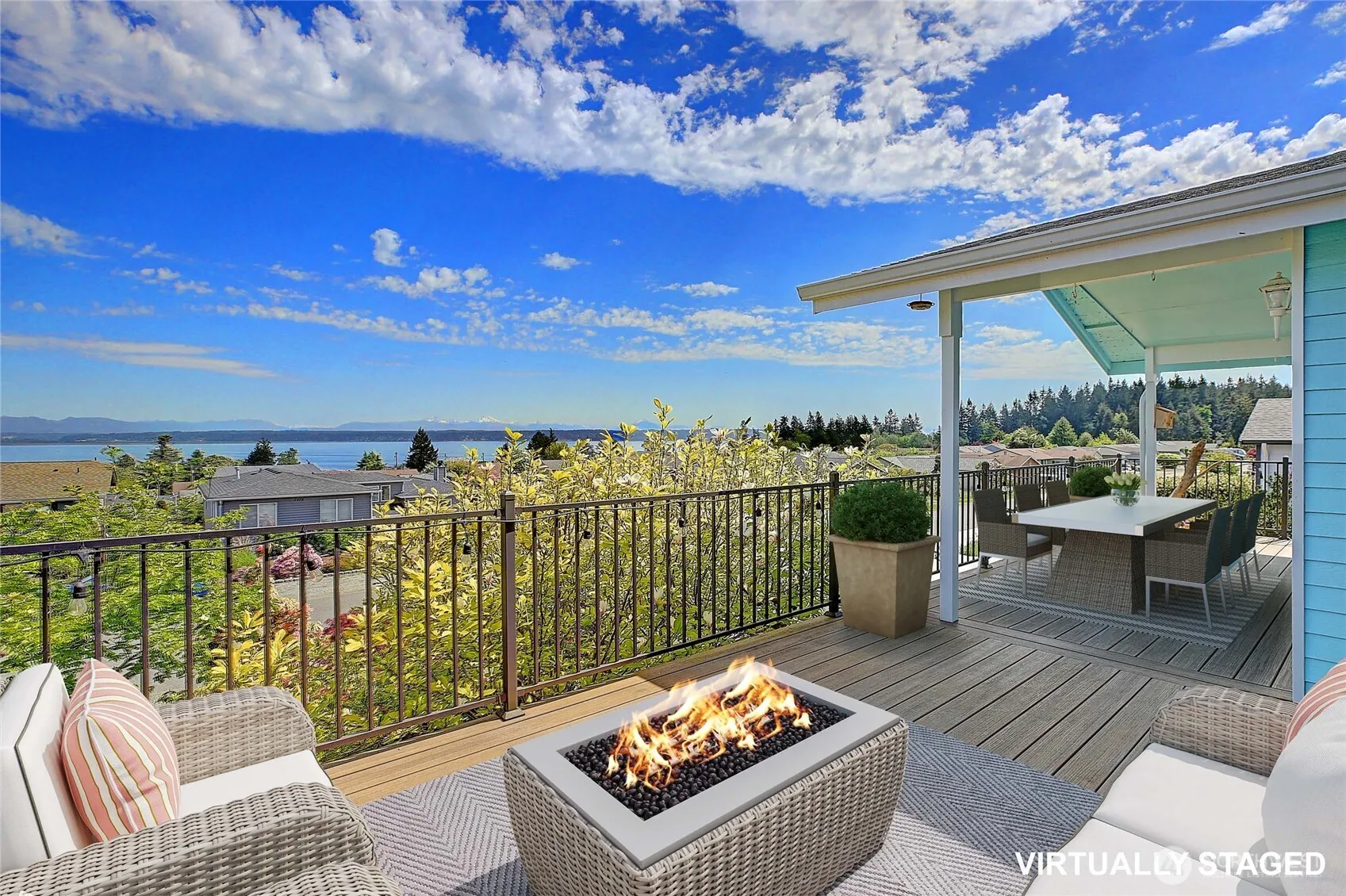 You’ll fall in love with this fabulous Beach House! Breathtaking views of the Bay, Mt. Baker & Cascades! New Roof, Gutters, Exterior Paint, Garage Doors, Stove, Blinds & Shed. Wonderful open floor plan w/ hardwood floors, vaulted ceilings, AC & Lopi gas stove. Living rm, dining rm, kitchen & Primary have spectacular views! Lg partially covered deck ~ great for all year entertaining! Primary bedroom w/ views & French Doors to the deck + 5-piece bath & lg walk-in closet. Den, 3/4 ba + laundry finish off the main floor. Multigenerational/MIL/ADU potential downstairs with its own separate entrance, family rm. bonus rm, bedroom & a 3/4 bath. Fenced backyard w/ fruit trees, berries & mature landscaping. RV parking & Sprinkler System. 3 Beaches!