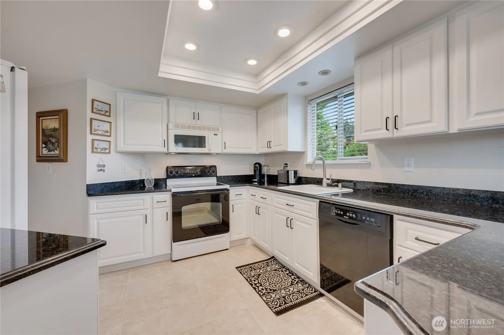 Beautifully remodeled top floor unit in the popular Lake Ballinger Estates community. This elegant home features a light and bright living space with vaulted ceilings in the living room sporting a tile fireplace, and a remodeled chefs kitchen with updated cabinets and stone counters. You will love the west facing covered balcony with views to Lake Ballinger and the park. Live large in this spacious home offering generously sized rooms. Convenient location directly across from the lake with access to swimming, fishing pier, boat launch, playground & more. Lake Ballinger Estates amenities include RV parking, club house, outdoor pool and guest suite. Easy access to I-5, golf course, transit center & the light rail station. New buyer can rent!!