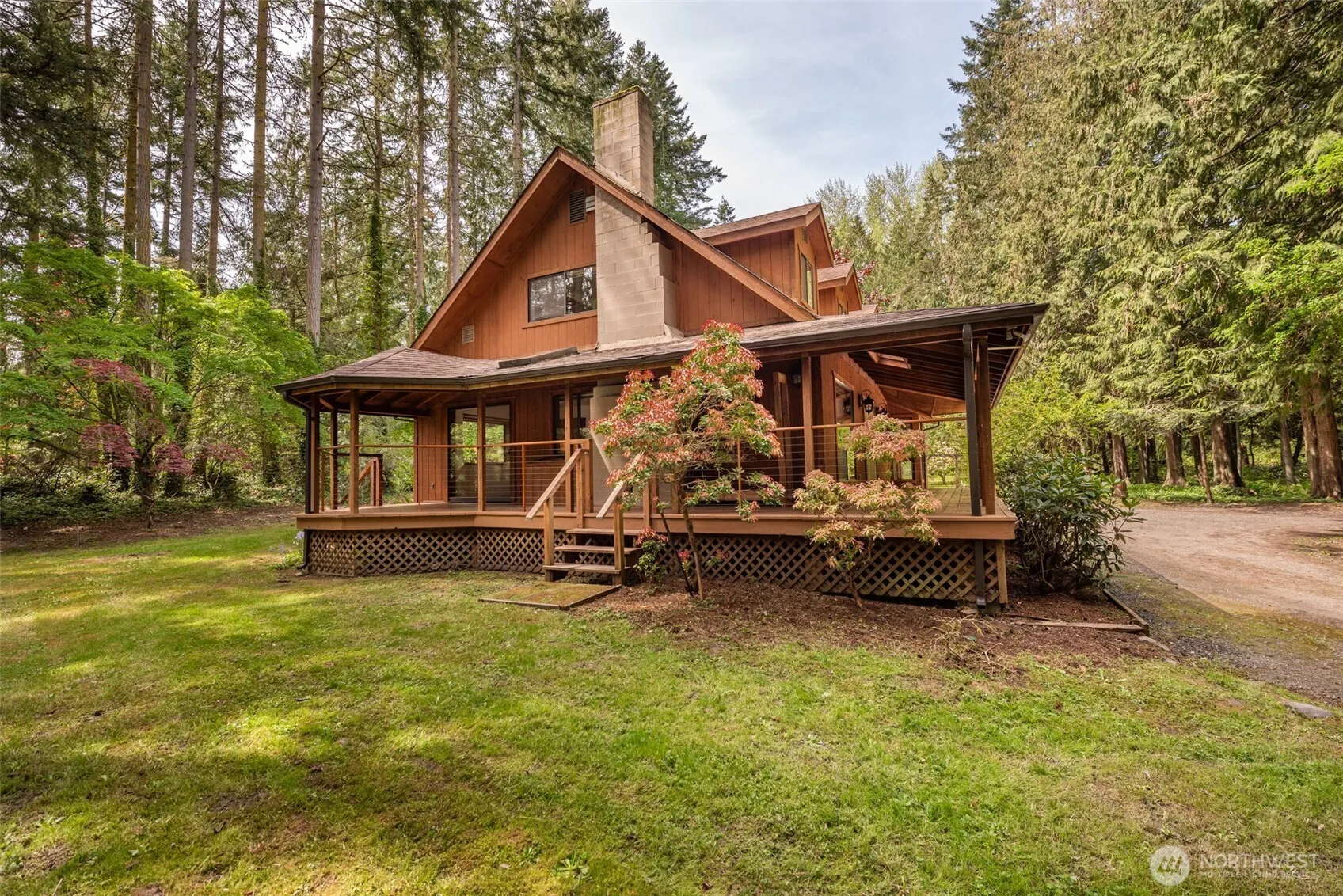 A stellar Pacific NW home in the woods awaits! Nestled on a 5+ private acres conveniently located between Sequim and Port Angeles, this is the quintessential vibe of the Olympic Peninsula. Meander down the circular driveway amongst evergreens, enjoy the convenience of the attached 2-car garage+detached pole building, wrap around covered porch, skylights, newer vinyl plank flooring, wood stove, solid oak kitchen cabinets, granite tile counters, walk-in pantry, and eating nook. All living can be done on the main level with the primary suite, featuring double walk-in closets, full back jack-n-jill style, laundry, and two extra bedrooms and bathroom upstairs. Tons of storage! Agnew Irrigation too! R2 zoning may even allow you to divide the lot!