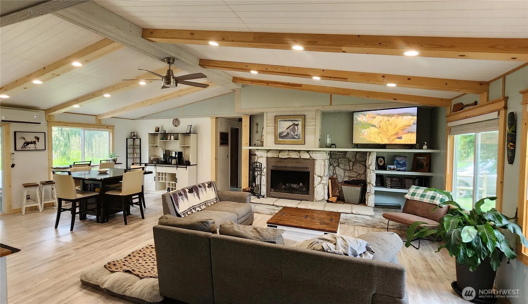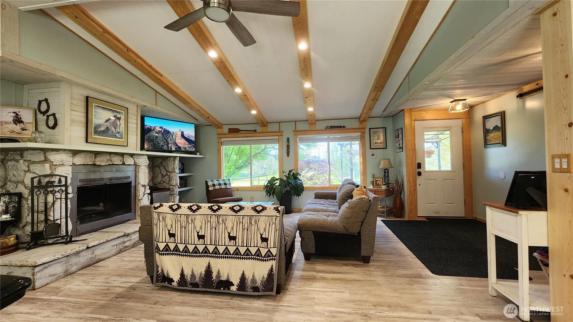 Gated, end of road privacy on 39 beautiful acres. Equestrian, farming (Ag 2 commercial) or country estate. Beautifully updated 3 bed, 2 bath w/new kitchen! White shaker soft close cabinets w/waterfall counters! Lefton kitchen sink, Samsung Bespoke appliances, new LVP flooring, interior/exterior paint, windows & custom trim, 3 year old mini split, generator hook-up. Custom 3 stall horse barn, Insulated tack room. Marina board, newer stall mats & stall grids. Hay storage. 60′ sand round pen. Chain Link & solid wood fencing for the 3 stalls. Pear orchard & other fruit w/ separate well, RV hook-up on cement pad. 40′ high cube for storage/shop space. 1920 farmhouse w/space plan design ready for renovation. Have it all, 10 min. from Grand Mound!