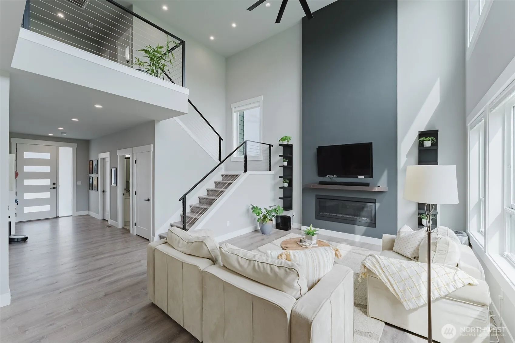 This stunning 4 bed / 3 bath house is luxury living at its finest. Situated on a spacious corner, end lot with only one neighbor to the side and overlooking a greenbelt with walking trails, you will instantly fall in love with the high-end finishes and spacious floor plan. Natural light pours into the main living area with 19′ ceilings and a 60″ fireplace. The gourmet kitchen will have you swooning over the quartz waterfall edge kitchen island, 5-burner range and double fridge/freezer. Enjoy the indoor/outdoor living on the covered back deck which receives the afternoon sun. Primary bedroom includes a walk-in closet, ensuite bathroom and French doors that open to a spacious balcony. Central A/C and LVT throughout. All this and so much more!