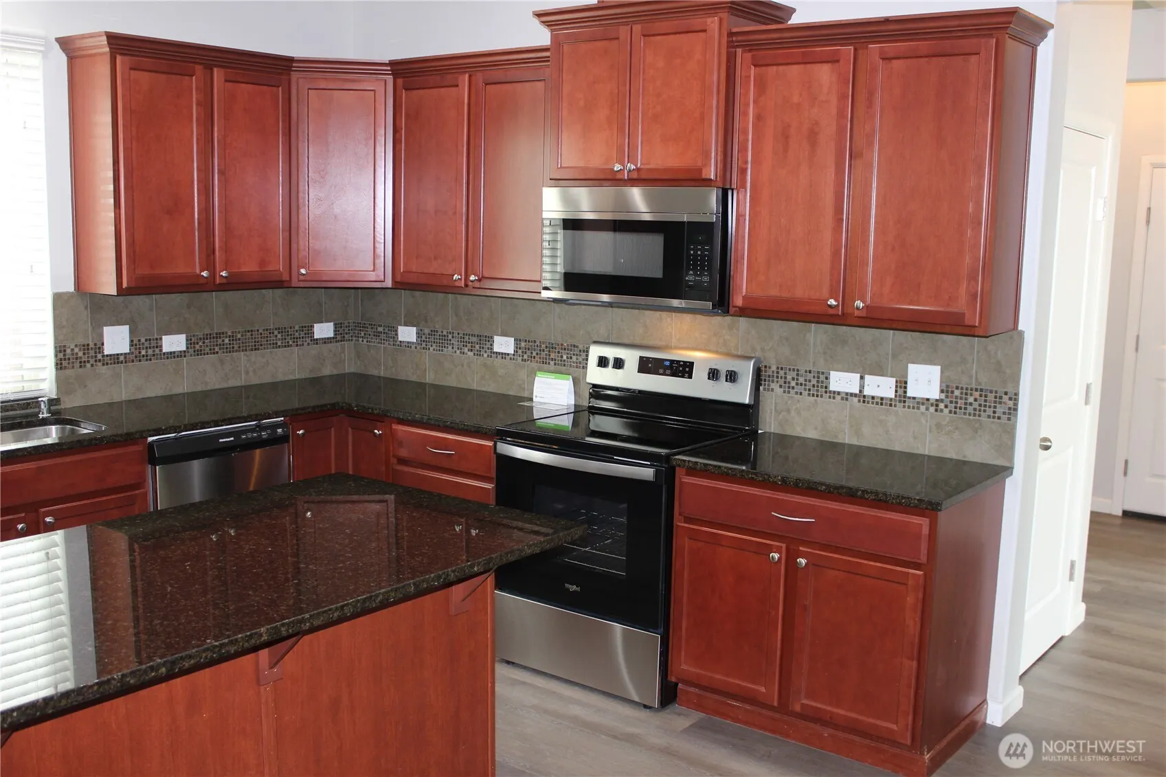 PRICE REDUCED! Beautiful open-concept main floor with luxury vinyl plank flooring, granite counters, and stainless Whirlpool appliances. Features a cozy gas fireplace, formal dining room, and main-level half bath. Upstairs boasts a spacious primary suite with quartz dual sinks, soaking tub, separate shower, and large walk-in closet. Second and third bedrooms also include walk-in closets. Bonus loft area and convenient upstairs laundry. Oversized 2-car garage offers ample storage. Enjoy the covered back patio with gas fireplace, fully fenced yard, lush landscaping, and sprinkler system. Located on a quiet street with no through traffic. Close to a community park and Munn Lake with boat launch access. Sought-after Tumwater School District.
