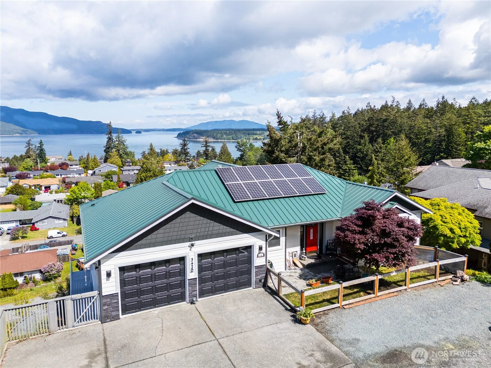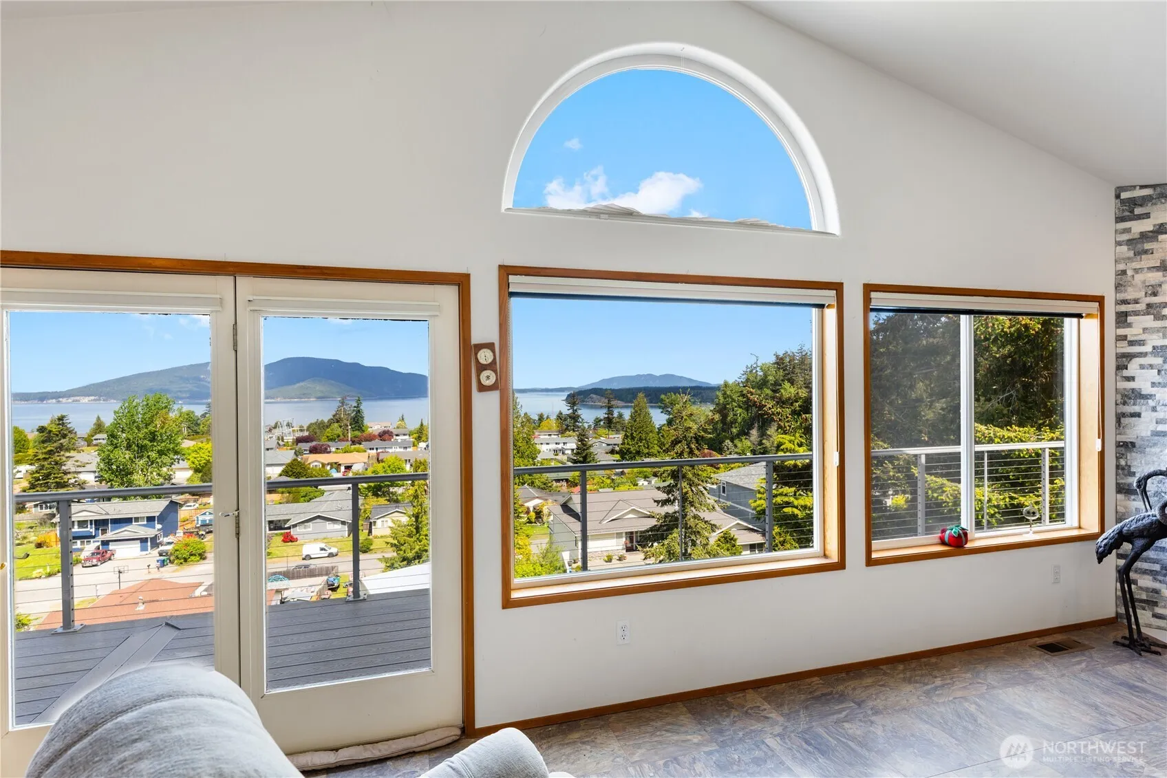 Experience breathtaking views of the San Juan Islands & Guemes Channel from this elevated hillside home. The open-concept living, dining, & kitchen area features vaulted ceilings, picture windows, & cozy corner fireplace, perfect for entertaining. The gourmet kitchen boasts granite countertops, stainless steel appliances, & a walk-in pantry for ample storage. Retreat to the main-level primary suite, complete with a soaking tub, walk-in shower, & private deck access. The versatile lower-level MIL suite features a kitchenette, two bedrooms, a bathroom, & a covered deck with sweeping views. Just steps from Little Cranberry Lake, this property is a true blend of comfort & nature. Updates – new siding 2024 & heat pump/AC installed 2025.