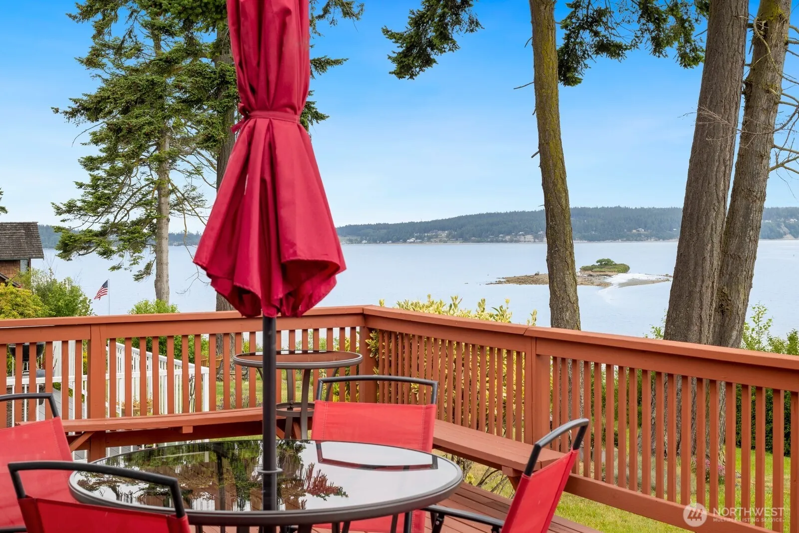 Imagine yourself on your private deck, mesmerized by bald eagles soaring gracefully overhead & whales frolicking in the tranquil waters below. All this, after a perfect day paddling your kayak along the stunning coastline. This adorable, short-term ready rental truly includes it all: kayaks, furniture, a fully stocked kitchen, & fresh linens. You’ll appreciate the peace of mind that comes with updated systems & appliances. Stay comfortable with AC on warm days & gather around the cozy firepit on cooler evenings. Optional HOA provides exclusive access to a private beach just a short walk away. At low tide, you can explore Baby Island on foot, no boat needed! Soak up the unobstructed water views & revel in the profound sense of peace & quiet.