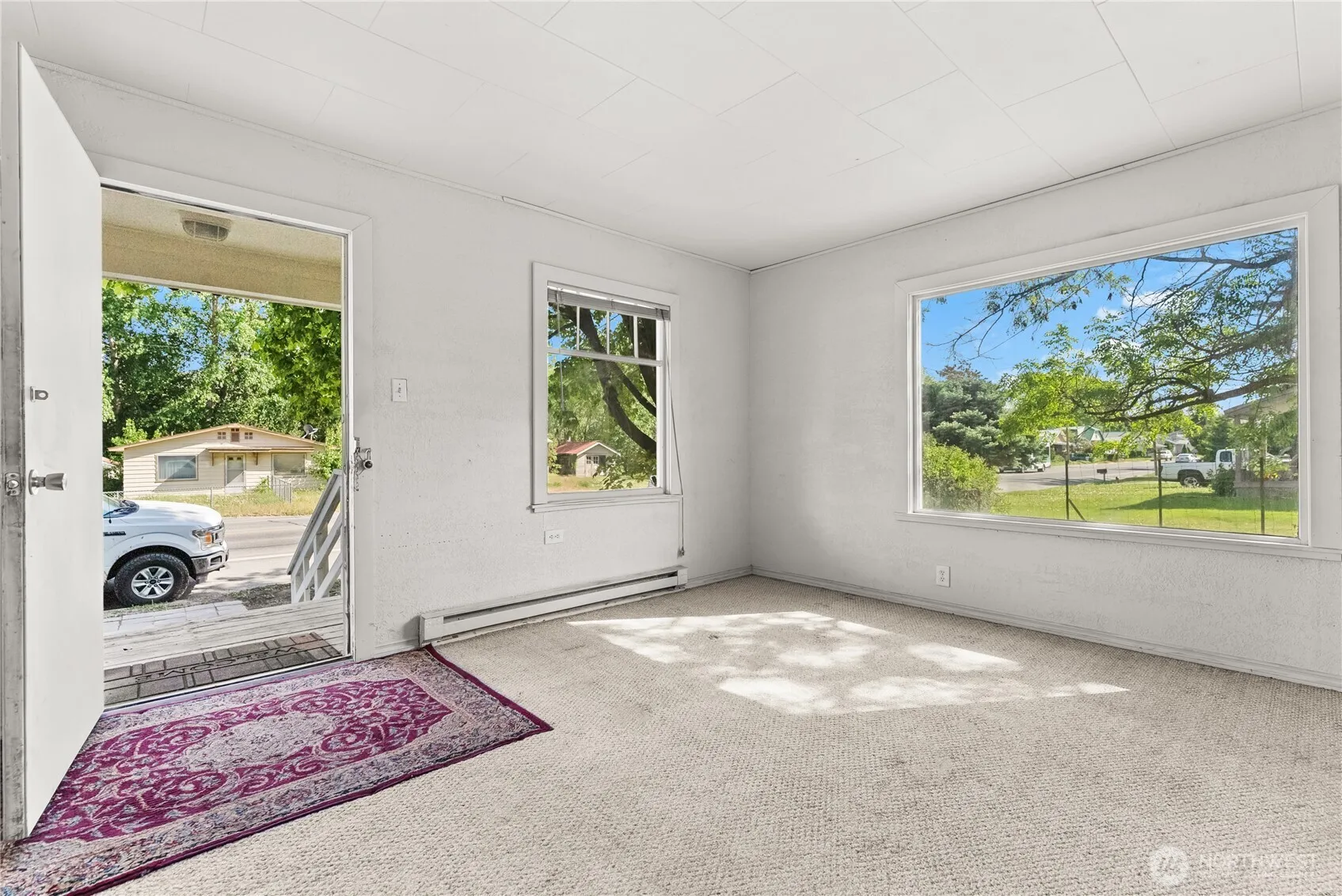 Adorable, welcoming home with lots of curb appeal and character galore. Paved walkway leads to expansive covered porch. Living room boasts a wood fireplace, leading to large dining room with hardwood floors. A hidden treasure is the hardwood floors hidden under the wall to wall carpet! Efficient kitchen with tiled floors is adjacent to the very large, bright laundry room with access to detached garage and backyard. Bedrooms are bright and cheerful, with deep closets. Bathroom has full size tub, tiled floor. Options for storage throughout the home. Up the stairs–a real treat! Knotty pine paneling, a third bedroom AND extra space for office or playroom. Backyard with mature “terraced” landscaping and greenery “nooks” extending to 3rd Ave!