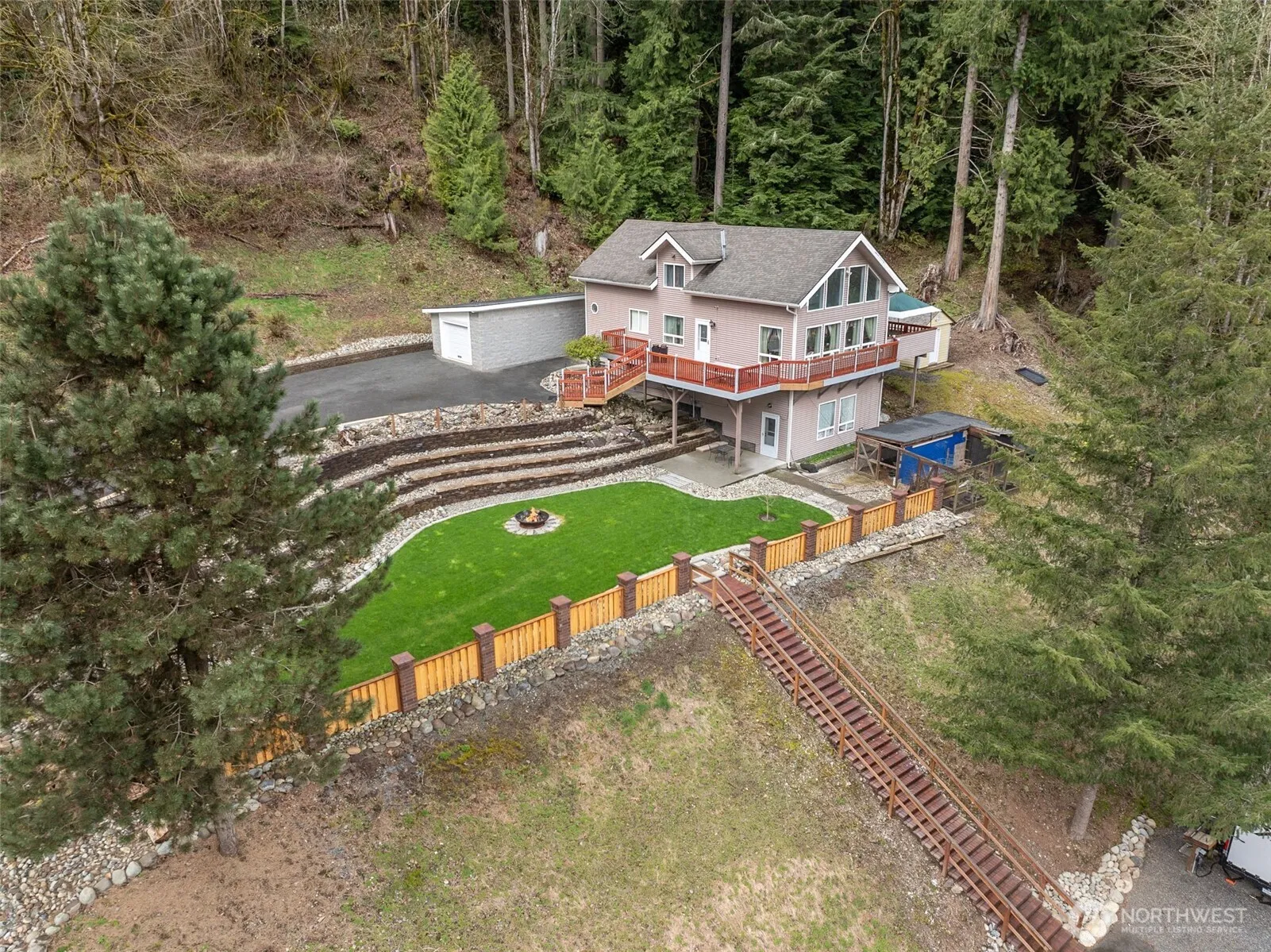 BIG PRICE DROP OWNER MUST SELL!!! REASONABLE OFFERS CONSIDERED!!!!This 4 BR home 2.5 BA is a private sanctuary yet minutes to Redmond, Remlinger Farms & more. Right across from the Tolt River there are mountain views &fun on the river! On just shy of 2 acres, Deer spotted on the massive front yard while owner has rented out the 3 RV spaces for $3300/month cash! Separate electrical meters allow for the home to be converted to 2! Separate entrance, 2nd laundry room & kitchen set up ready to go for downstairs mother in law/rental for another $3000+/month! Home has a generator & an extra refrig if wanted! Massive decks, this was built as dream home for builder! Loft has primary with ensuite bathroom & FP. NO HOA Pre-inspected of course!