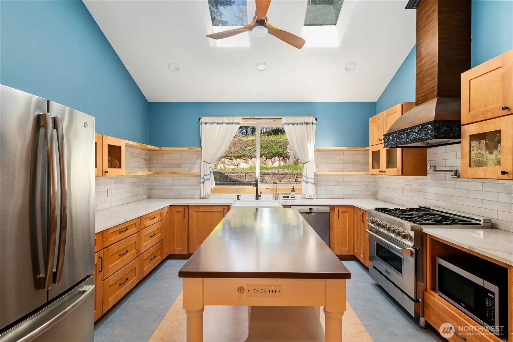 This updated, centrally located home lives like a country estate. The main home is mostly one-level, with a dream kitchen — two islands, high-end finishes, carved Italian hood above commercial 6-burner gas range (with hybrid oven)! The open layout allows for warm group get-togethers & private meditative spaces inside and out. The wrap-around, expansive deck is wired for live musicians; 2-year-old spa w/ multiple massage jets overlooks an expansive, parklike lawn. New one-bedroom ADU allows for multi-generational living, or added rental income. “Hill House” is 2-car garage/shop w/ kitchen, bath, laundry and bedroom/office. Lots of parking for you & your guests. Also: small orchard, 3 more outbuildings. This is a stunning & unique property!