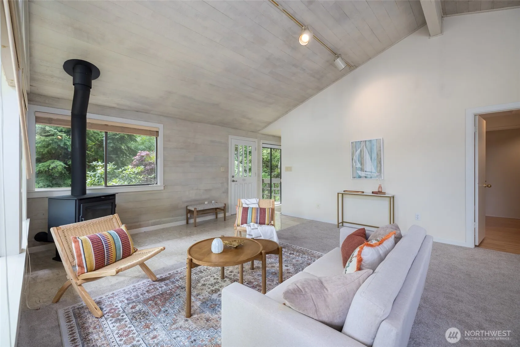 Live the dream in this exceptional La Conner, Shelter Bay home with access to a private marina, par 3 golf course, tennis courts, beach, boat launch, clubhouse, trails & more. This quintessential Pacific Northwest home features white-washed cedar vaulted ceilings, engineered hardwoods & a vast kitchen with ample cabinetry, plus a walk-in butler’s pantry & island bar—perfect for entertaining. Stay cozy with a wood stove & fireplace. The spa-like primary suite offers a jetted tub, solarium windows, double vanity & walk-in shower. Enjoy total privacy surrounded by the woods, on a nearly half acre lot that borders a green belt on two sides. You’ll love the easy-care landscaping & views of the Rainbow bridge—all in this resort-style community.