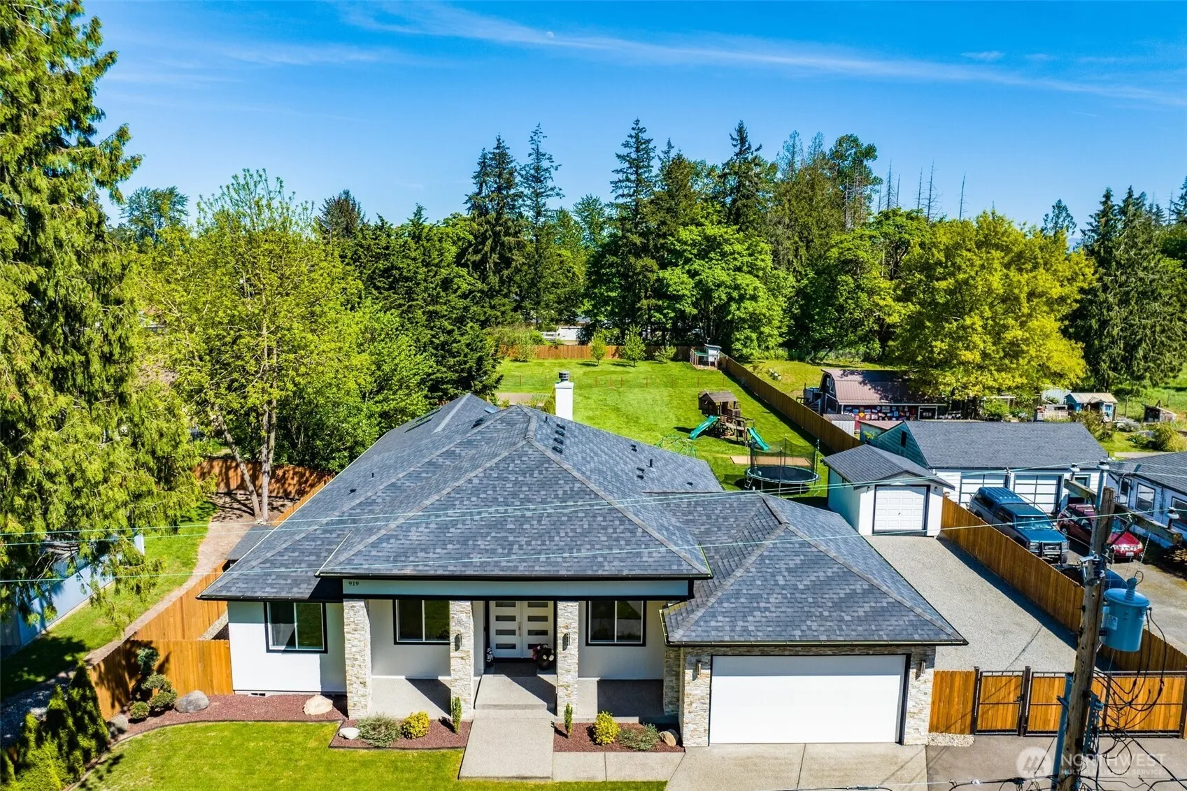 Beautiful house in desirable neighborhood on .78 ac. nice level lot. Absolutely stunning custom home futures high-end finishes and an abundance of natural light give the house a slick look and airy feel! Very convenient open floor plan offers nice Great room with wood fireplace, beautiful kitchen, spacious Dining room, 3 bedrooms + bonus room, built-in sauna, central vacuum system, heated tile floors, quartz countertops, 9 feet ceiling, all LED lights, A/C, covered porch, Master suite that is simply amazing! Outstanding, over 500 sq.ft. covered deck makes you feel like country living at it’s best but conveniently close to schools, freeways & shopping as well. Fully fenced back yard with a lot os space for parking RV, boat or cars. Must see!