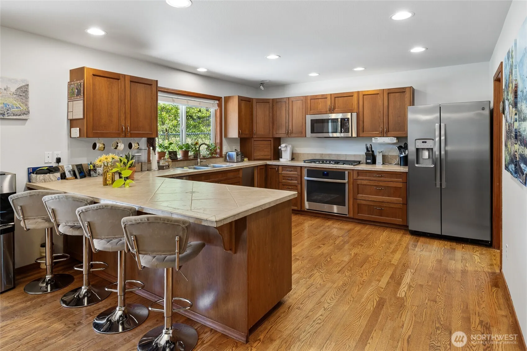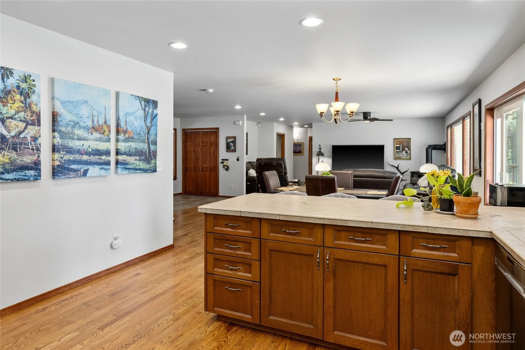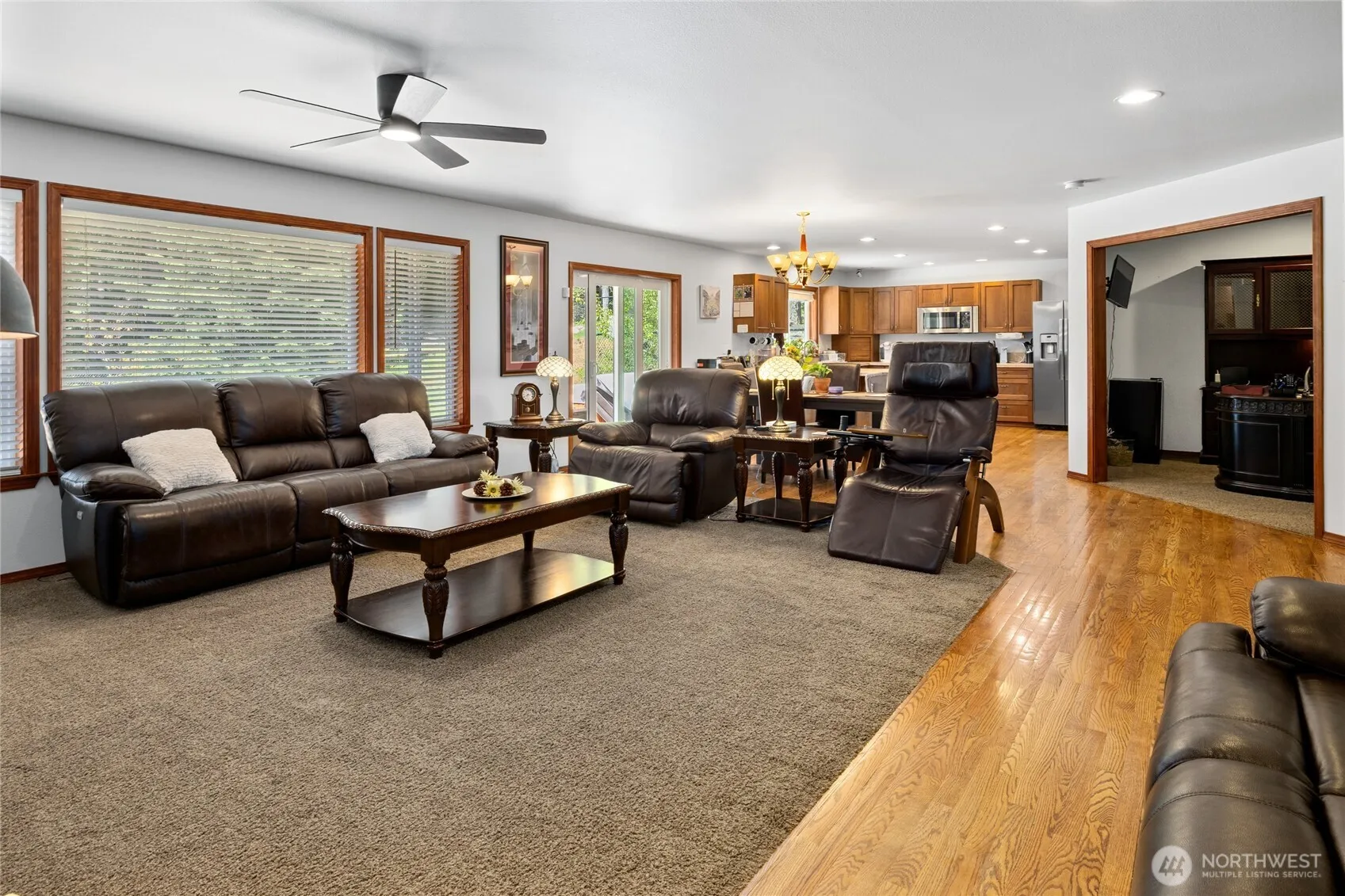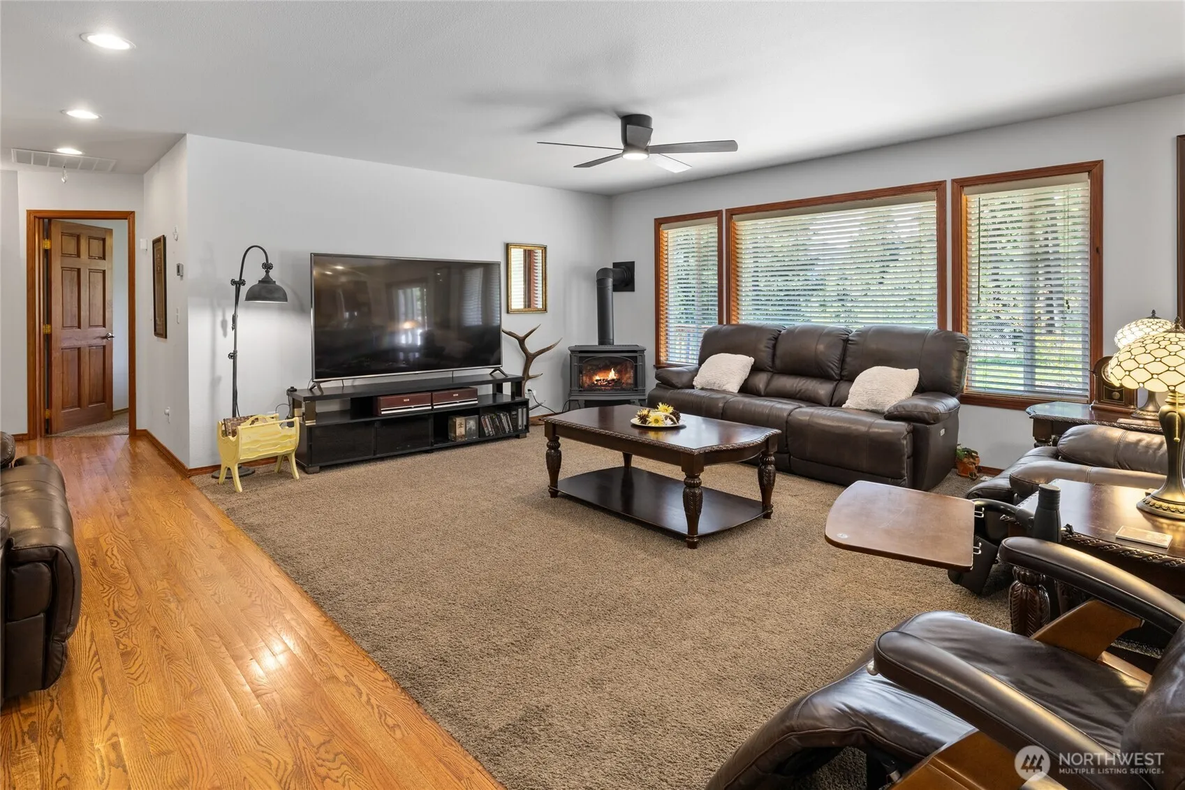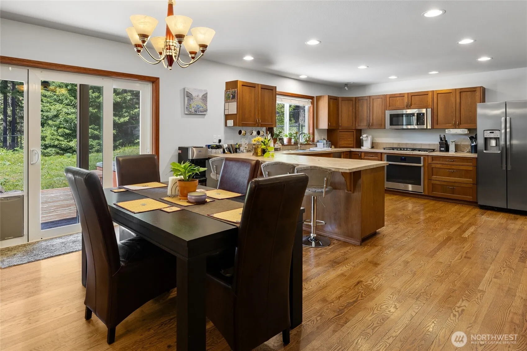 Turn key cabin on over an acre of treed serenity! Easy entertaining great room~ a well appointed kitchen with island seating, cute dining area, & living room with a toasty propane stove. The indulgent Primary Suite hosts a large tiled shower, corner tub, & huge WIC. 2 add’l guest bedrooms, a full bath, + a home office! Rock away evenings on the charming covered front porch, or enjoy soaking in the hot tub after a long day on the lake or snowmobile trails! Spacious back deck overlooks your big fenced back yard & has peek-a-boo mountain views. 30×32 garage has room for all your toys + a home gym! Minutes to Lake Cle Elum, snowmobile trails, hiking, and historic Roslyn- a year-round adventure base camp!