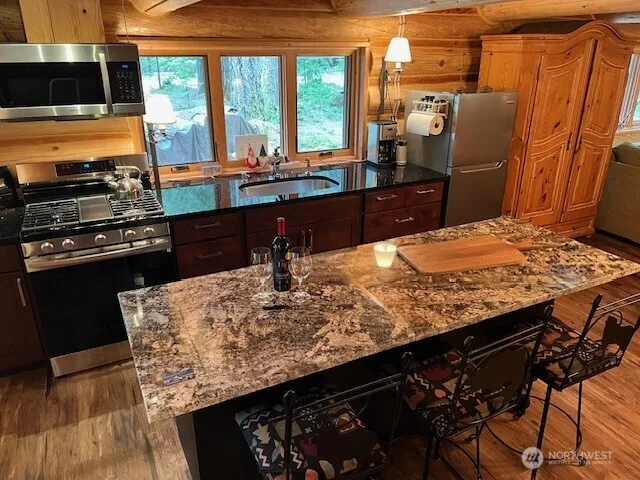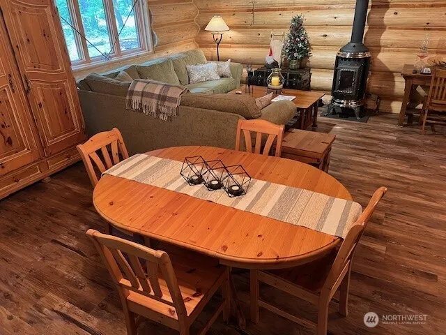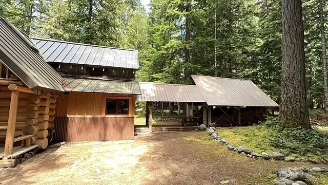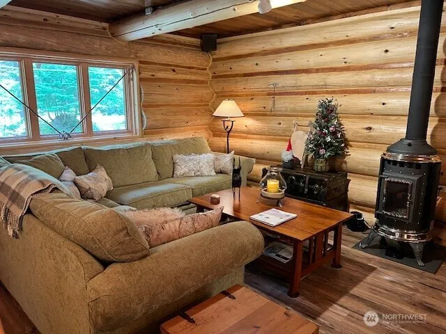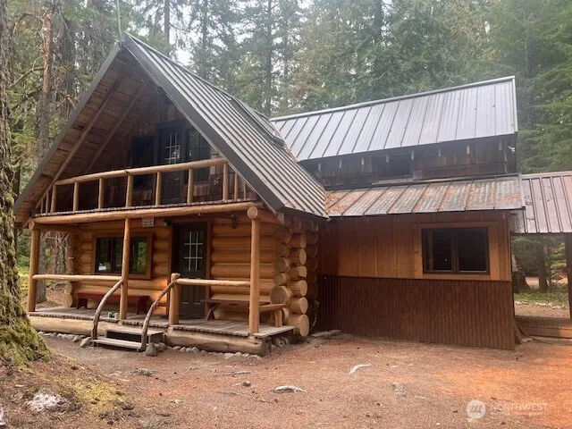 At the base of Crystal Mountain Blvd & gateway to Mt Rainier Nat’l Park. Exceptional USFS log cabin is so much better than new. Every inch painstakingly upgraded w/top-quality materials & inspired design choices. Expansive main floor has open kitchen, dining & living off covered entry porch. Adjacent 3/4 bath & utility room w/W&D hook-up, furnace & water tanks complete main level. Staircase leads to 2nd floor sleeping & 1/2 bath. Large bedroom with dividing potential. Sleeping nook tucks in next to half bath. Covered breezeway w/rope swings leads to large woodshed, storage & anchored propane generator. Additional locked storage building. Private well & septic system. Furniture included. This is your dream log cabin in the old-growth forest!