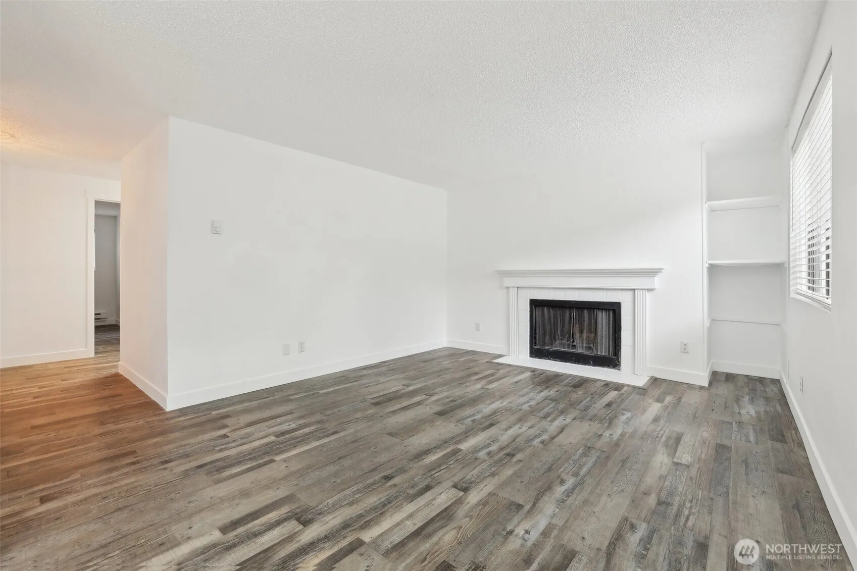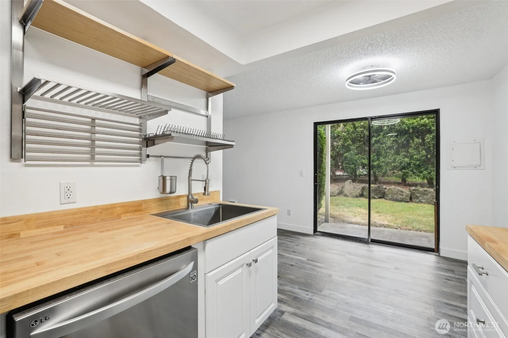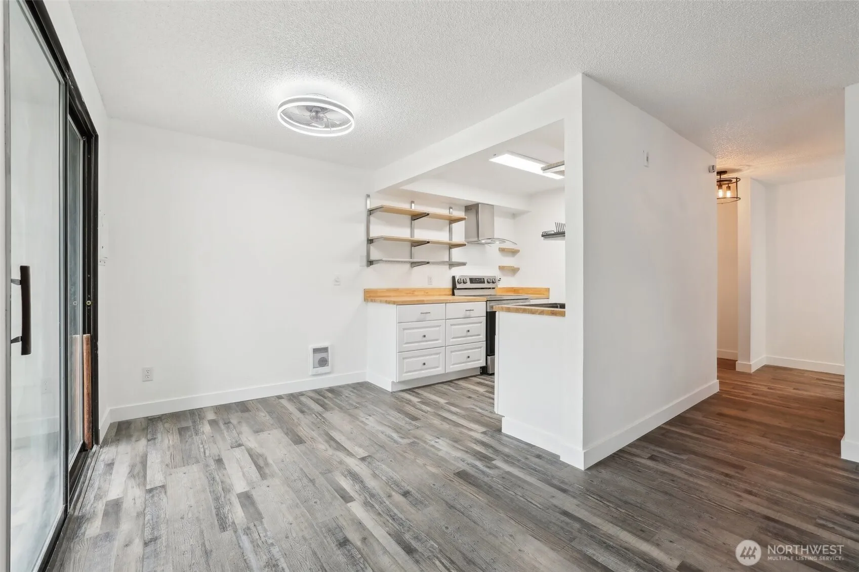 Recently renovated 2 bed 2 bath, ground level condo at South Ridge in SeaTac. This 805 sqft corner unit features a modern kitchen with butcher block countertops and new stainless steel appliances. The open living room layout includes a cozy wood-burning fireplace and extends to a designated dining space. Freshly painted for a bright, move-in ready feel plus many improved fixtures and updated flooring throughout. Enjoy the convenience of in-unit laundry with a combo washer/dryer. Relax on your private patio, reaching out to a grassy area maintained by HOA. Includes an assigned carport parking space and nearby storage closet. Sought after location close to shopping, parks and a variety of transit options, perfect for commuters.
