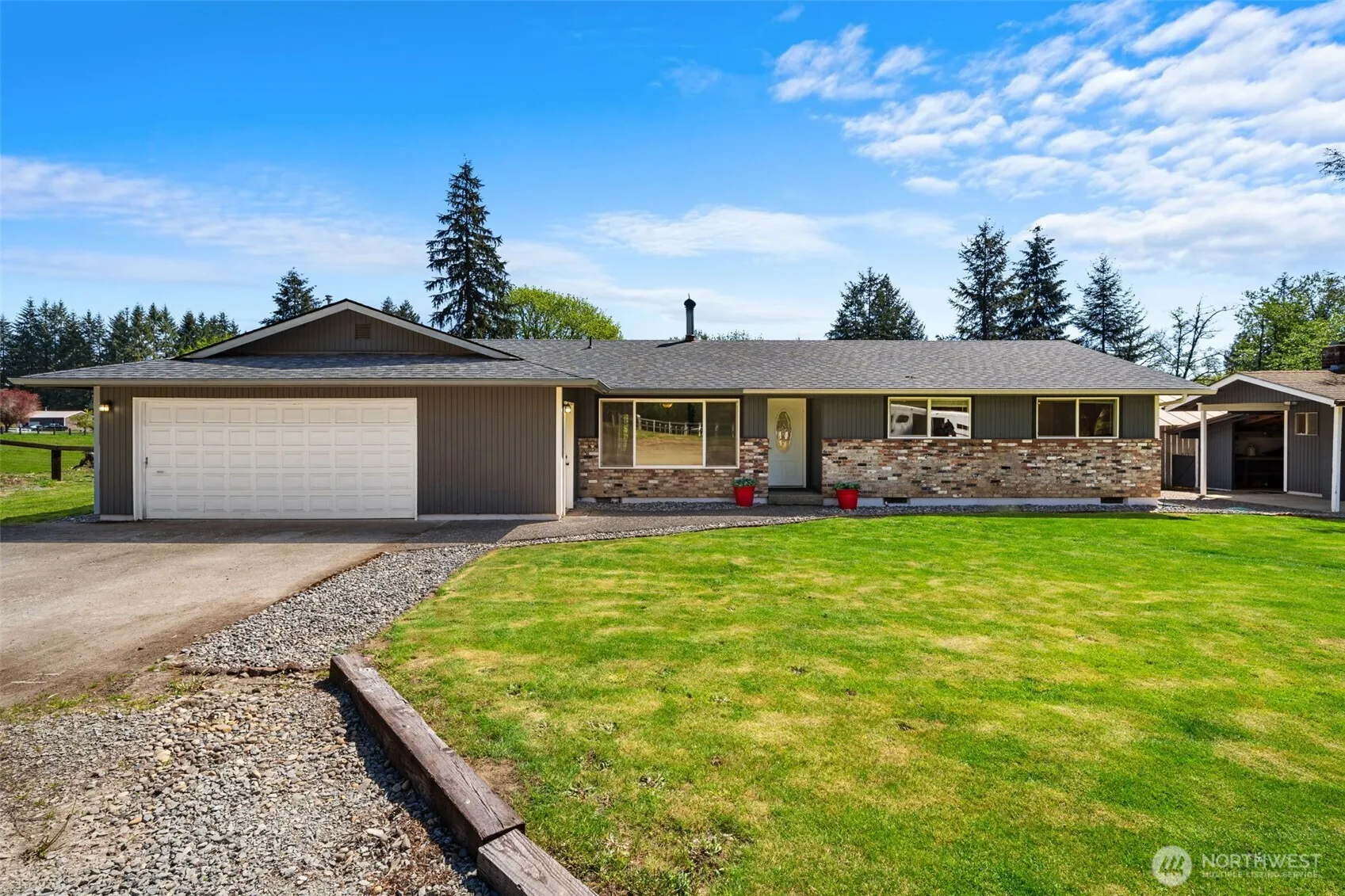 Back on Market no fault of Sellers! Horse Property! Magical 3 bed, 2 bath ranch on 7.23 fully fenced, usable acres with lush pastures, a seasonal pond, and territorial views. Ideal for the practical Northwest equestrian, with a 2,400 sq ft barn featuring 3 stalls (room to add more), an insulated tack room, and ample shop space. The 1,624 sq ft home offers vaulted ceilings, a cozy woodstove, tons of natural light, and an attached garage. Just a short drive to horse trails and equestrian amenities in the Gifford Pinchot National Forest and Lewis River Rec Area. Only 35 minutes to PDX. No HOA.