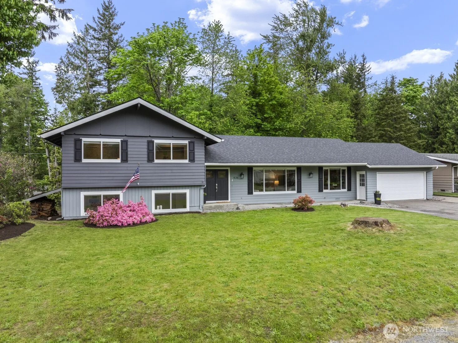 Spacious. Versatile. Views. Beautifully remodeled on nearly ½ acre in DT North Bend’s most cherished neighborhoods. Enjoy mountain views, walkability & a flexible tri-level layout perfect for entertaining. Thoughtful updates throughout: paint, lighting, flooring, newer roof & more. Chef’s kitchen: quartz, SS appliances(gas), pot filler & island. Main floor office/guest room w/ nearby ¾ bath. Upstairs: 3 large retreat-like bedrooms + 2 baths; Lower level: media lounge, 2 non-conforming beds & 1/2 bath – ideal for multi-gen living & WFH. Fenced yard w/ garden, deck, firepit, RV parking, shed, 2-car gar w/shop. No HOA! A rare find!