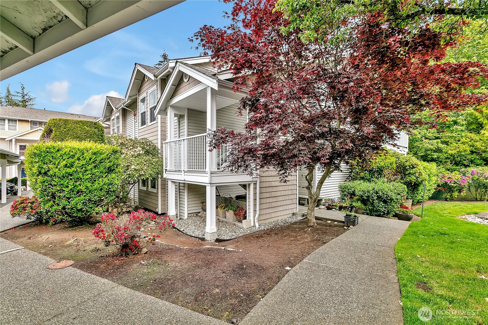 Discover this rare top-floor, end-unit condo in the desirable Nantucket community at Harbour Pointe, complete with a private, detached garage! This 3-bedroom, 2-bath home features soaring cathedral ceilings & approved luxury vinyl plank flooring throughout the main living spaces, an exceptional upgrade in an upstairs unit. New water heater! The open-concept layout flows seamlessly from the kitchen to living area & onto a private patio. The spacious primary bedroom includes an en-suite bathroom for added privacy. Only one shared wall and no upstairs neighbors! Set in the established Harbour Pointe neighborhood, you’ll have access to nearby conveniences and easy commuter freeways, all while enjoying the ease of condo living.
