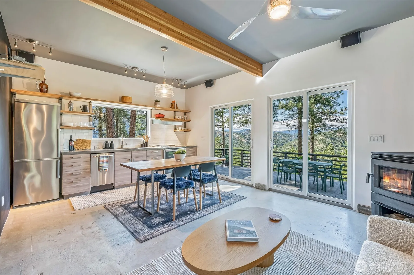 Secure your perch above Leavenworth on this 20 acre mountain refuge. Designed by Syndicate Smith and re-built by Aiken Peterson in 2011, your modern mountain retreat marries perfect design, great quality and carefully chosen finishes. Pick your favorite spot for the ultimate remote office with great views from all windows. The cabin is spacious and comfortable, while meeting Chelan County’s ADU specs. With another site just through the trees, a private well and a 4 bedroom septic, build a larger home later if you desire. Leavenworth’s outdoor adventures are at your doorstep – just minutes from hiking, biking, skiing, rafting, climbing, golf.